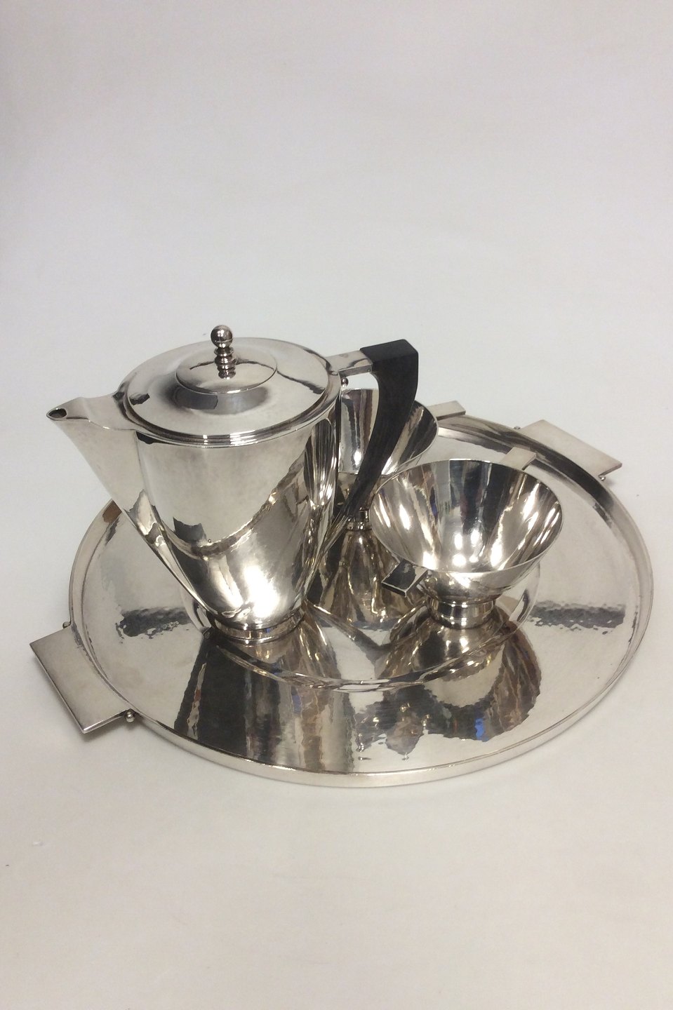 Georg Jensen Sterling Sølv Art Deco Kaffe sæt og Bakke af Johan Rohde no 529 A