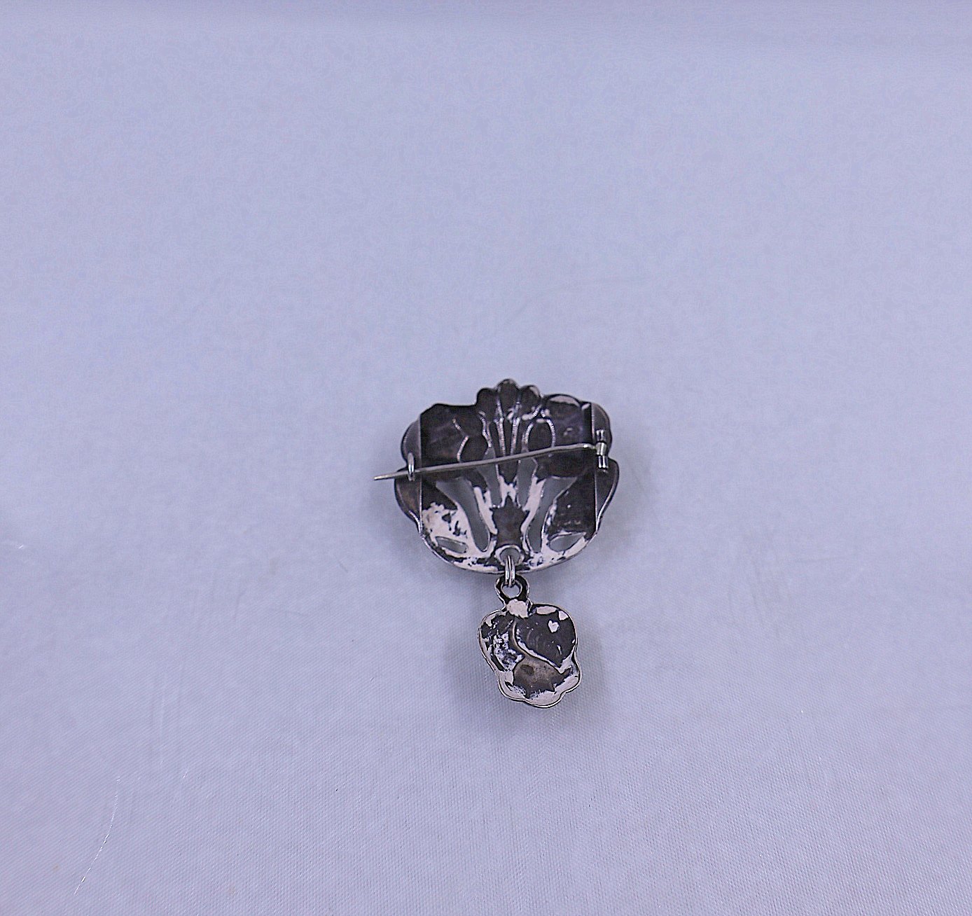 Sølvsmed Bernhard Hertz. Skønvirke broche med rav. Stempel BHG 826 s. Brochen er brugt, med i god stand