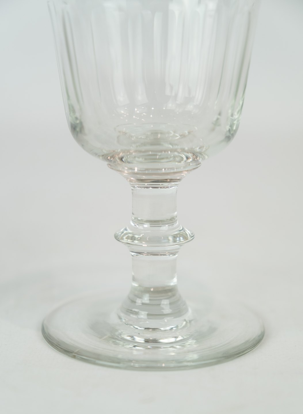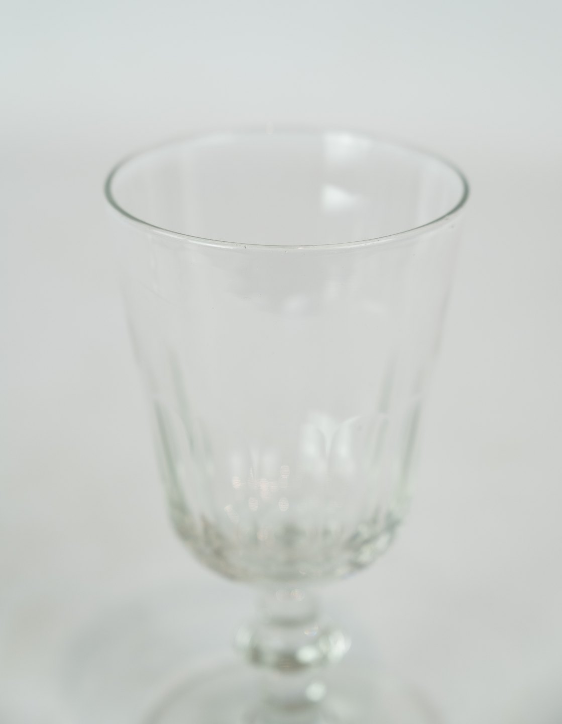 Sæt af fire mundblæste Christian d. 8 glas fra 1890erne, i flot brugt stand. Vi har flere på lager.