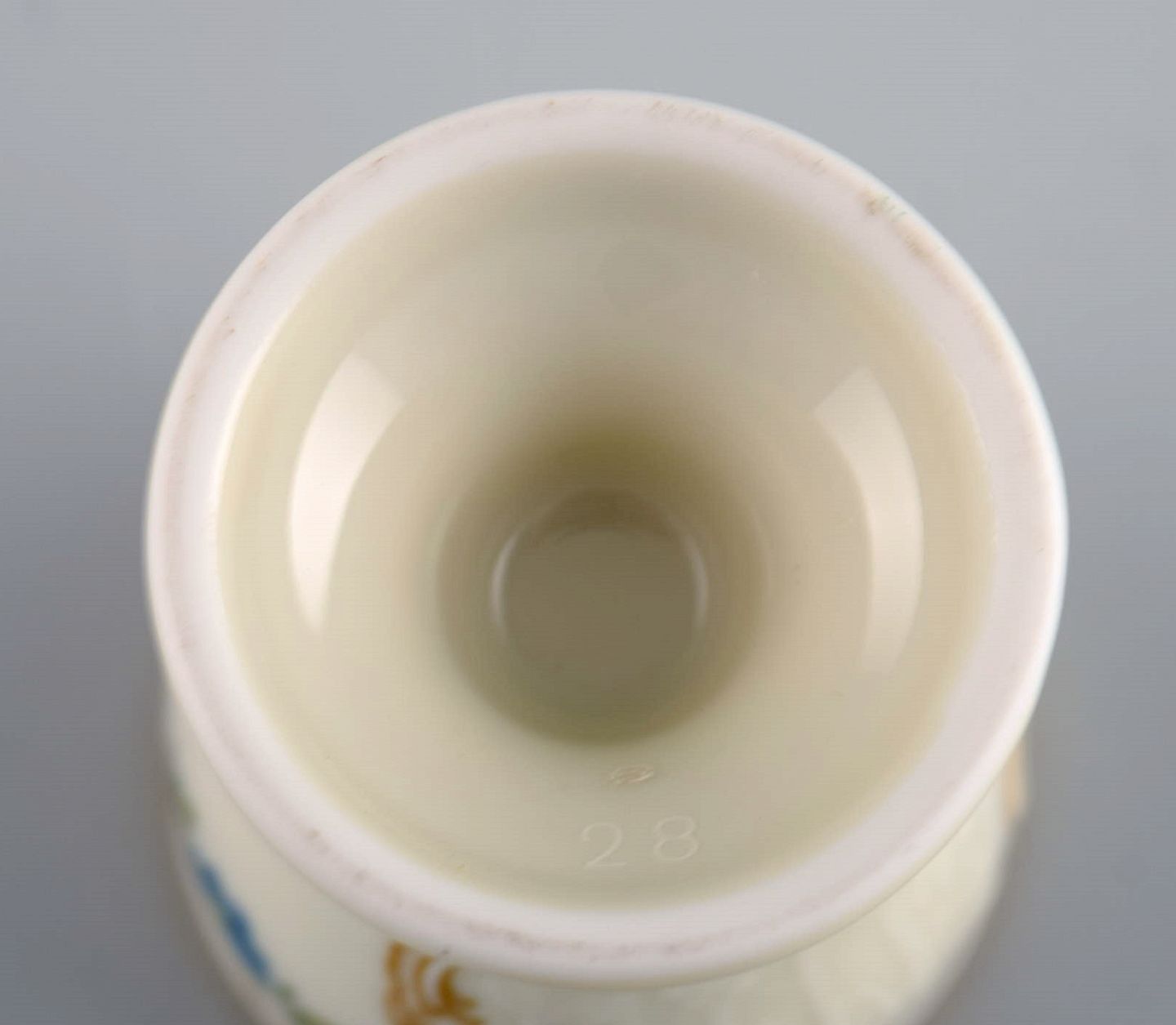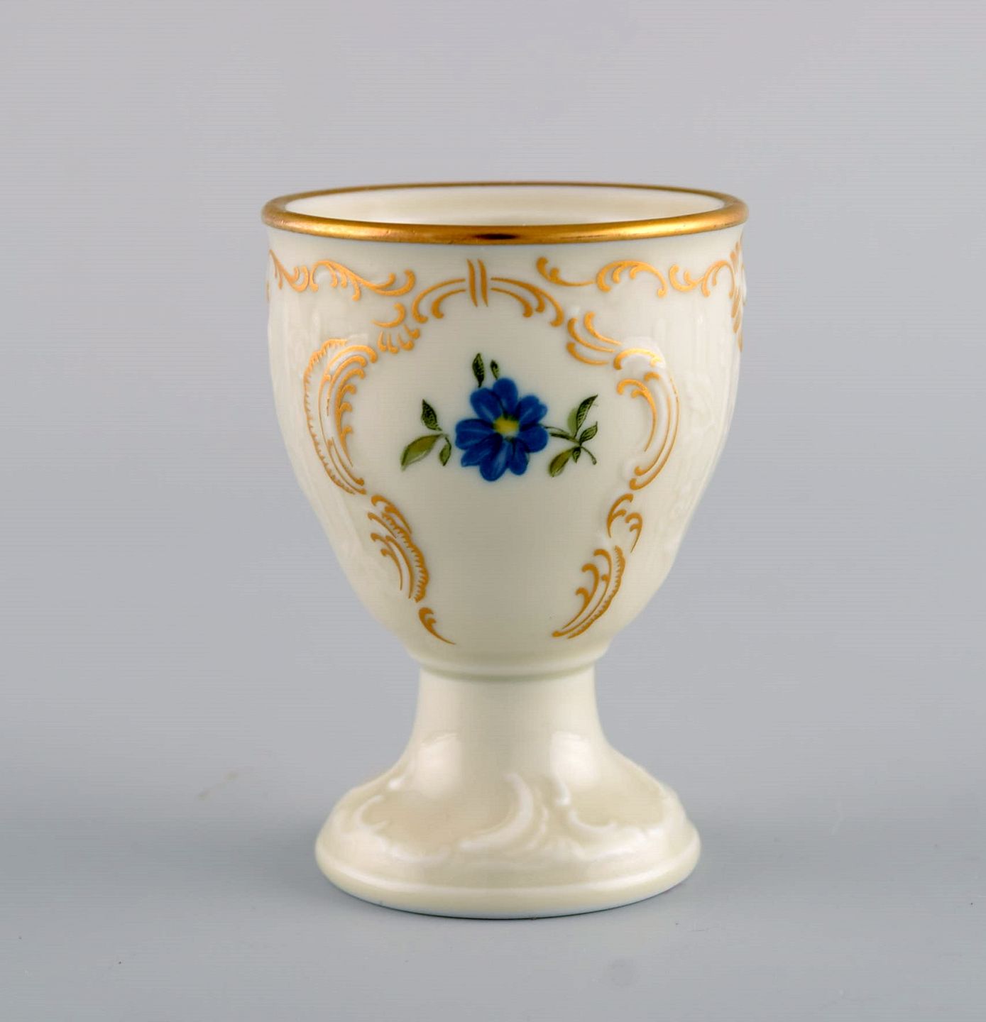 Seks Rosenthal Classic Rose æggebægre i håndmalet porcelæn med blomster og gulddekoration. Midt 1900-tallet.