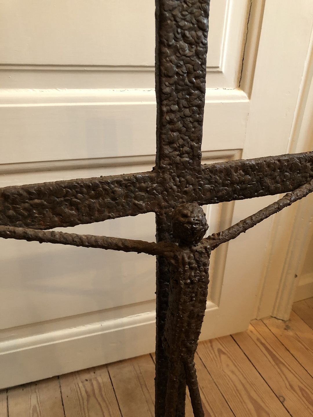 Kristus figur på kors udført i patineret støbejern.