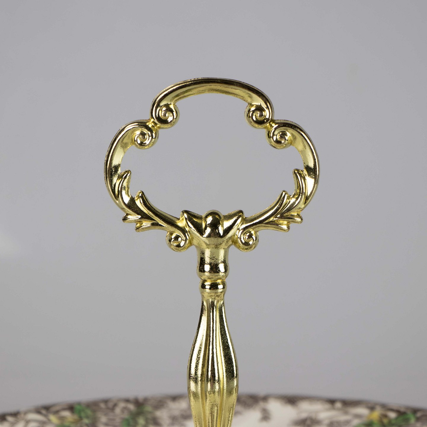 Kagefad med gylden hank i engelsk fajance fra stellet The Brook