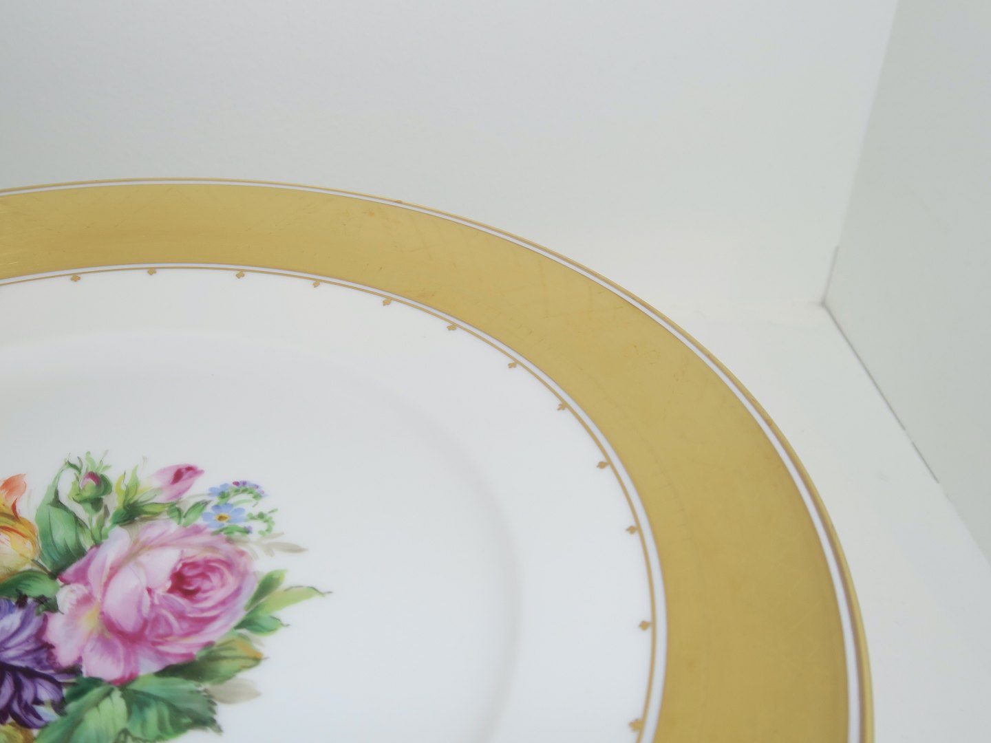 Royal Copenhagen Variant af Guldkurv, frokosttallerken med blomsterdekoration og bred guldkant.