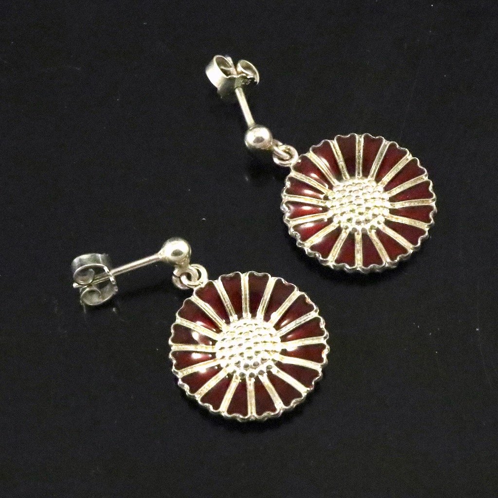 Bernhard Hertz. Silver Daisy Earsticks with burgundy enamel. 18mm