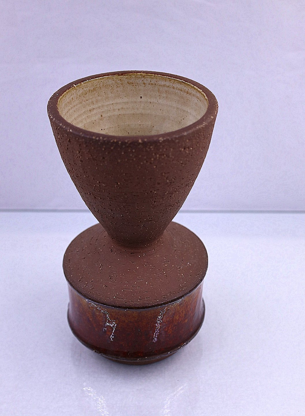 Michael Andersen, Bornholm. Keramik vase, der er delvis glaseret med rødlig glasur, indvendig er vase cremefarvet.