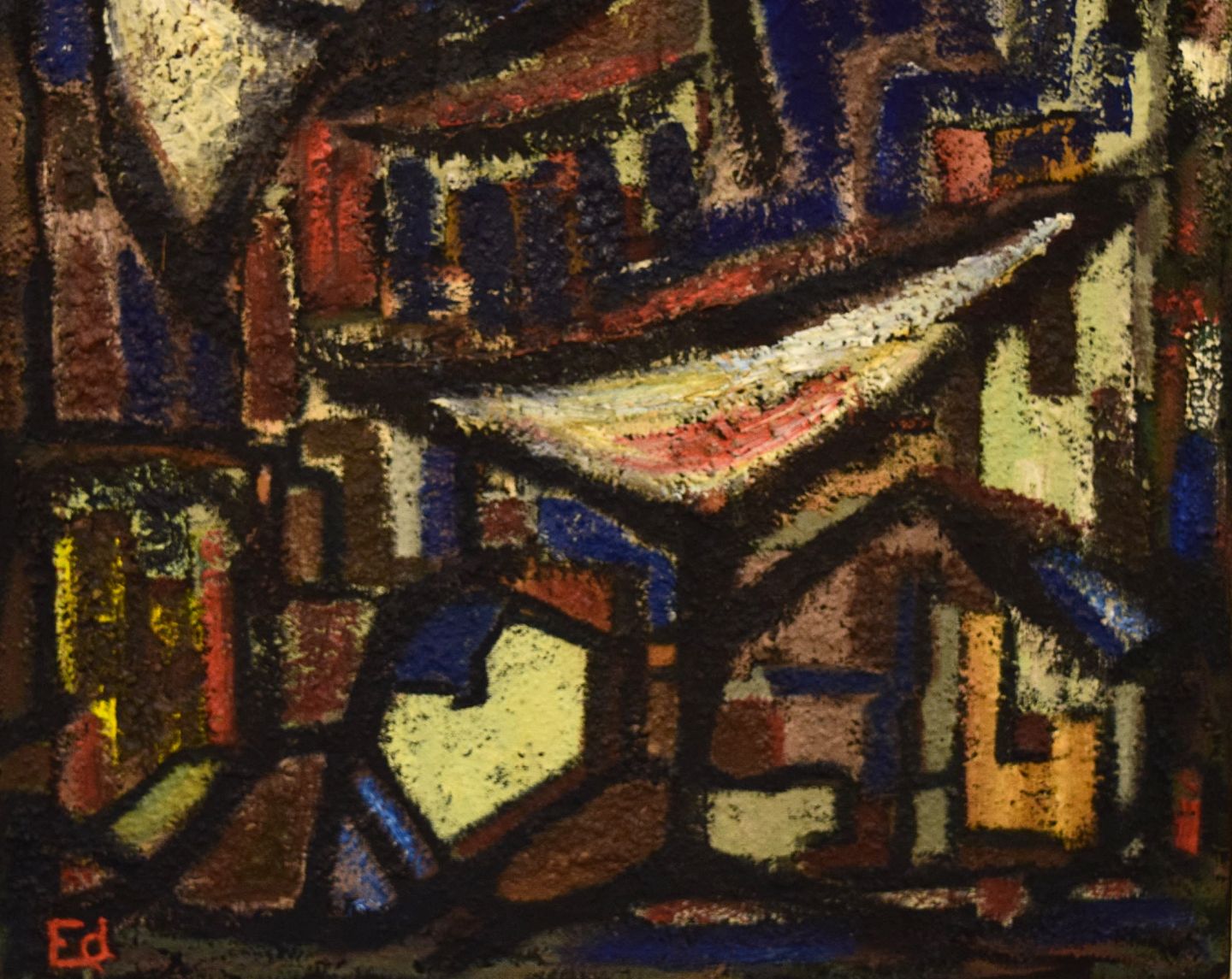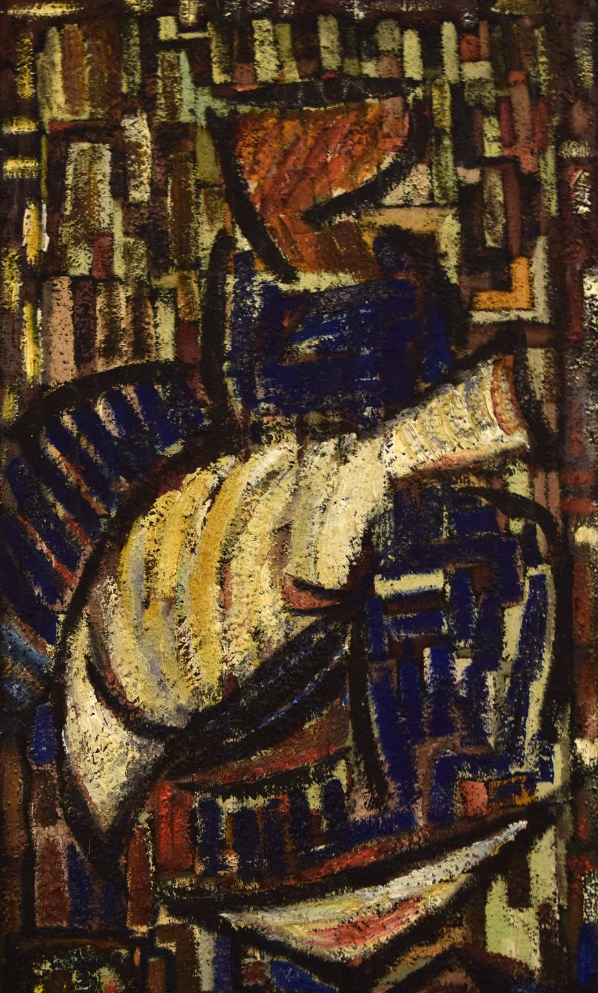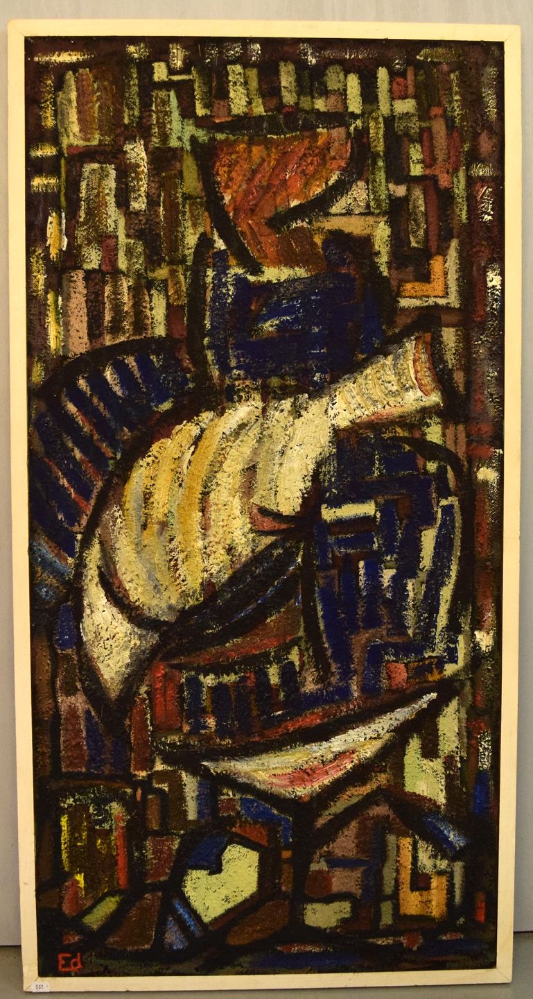 Skandinavisk modernist. Olie på plade. Modernistisk komposition. 1960'erne.