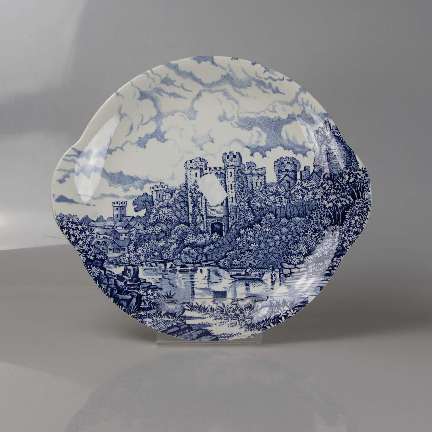 Rundt fad med hanke i engelsk fajance fra stellet English castles