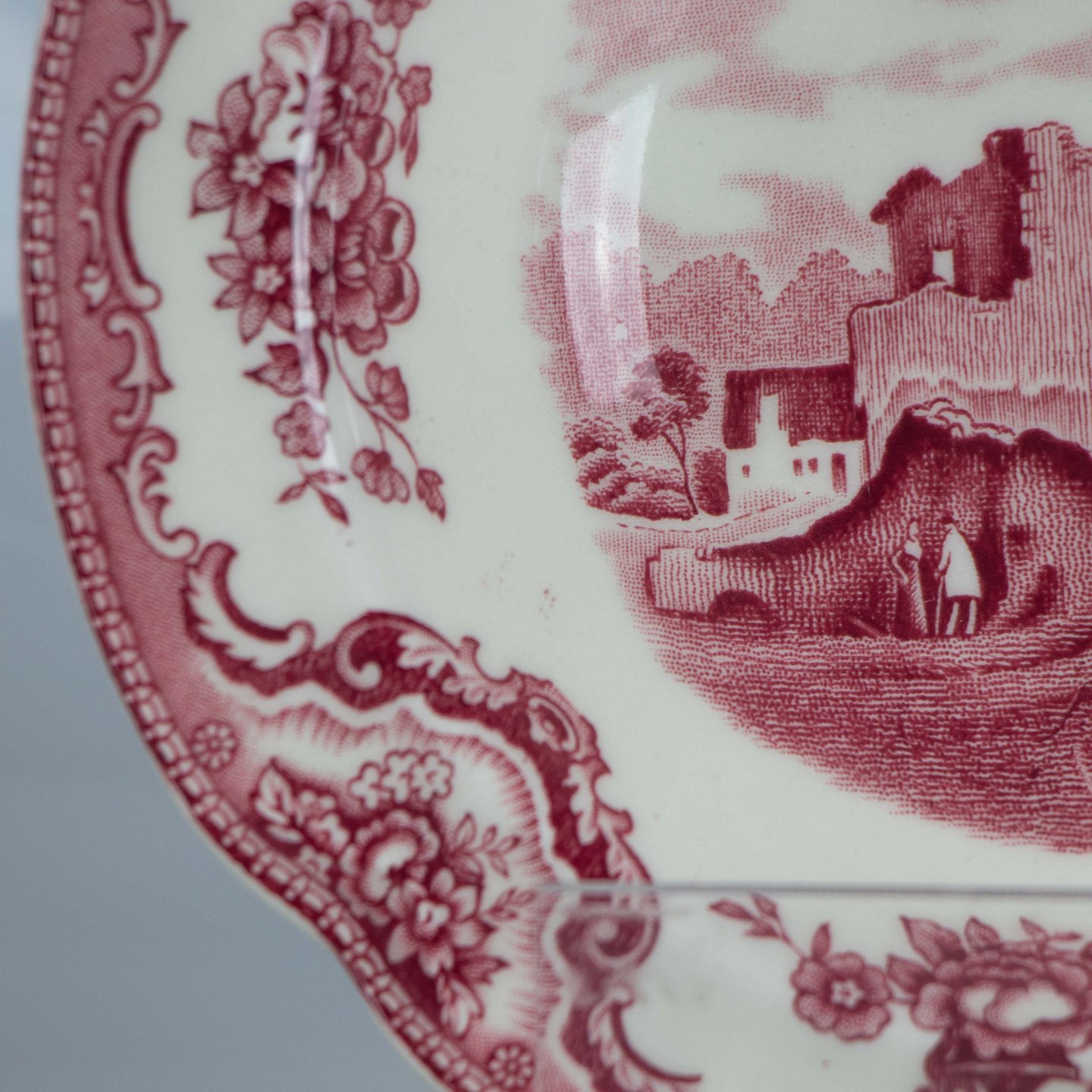 Skål i lys fajance med røddekoreret slotsmotiv.