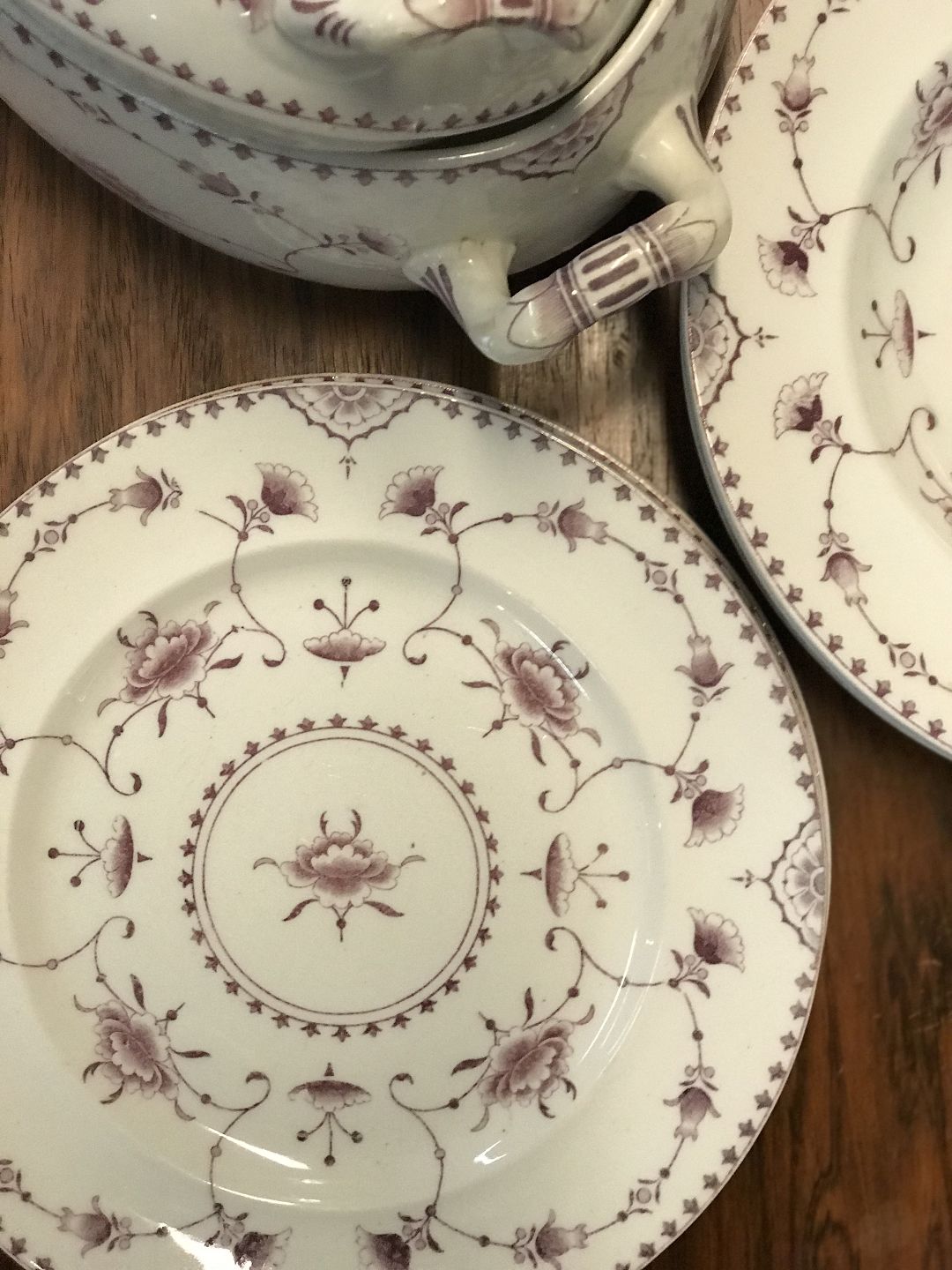 Spisestel. Delft. Furnivals Limited. Trade Mark England. Ro No 586824. Ring for lager.