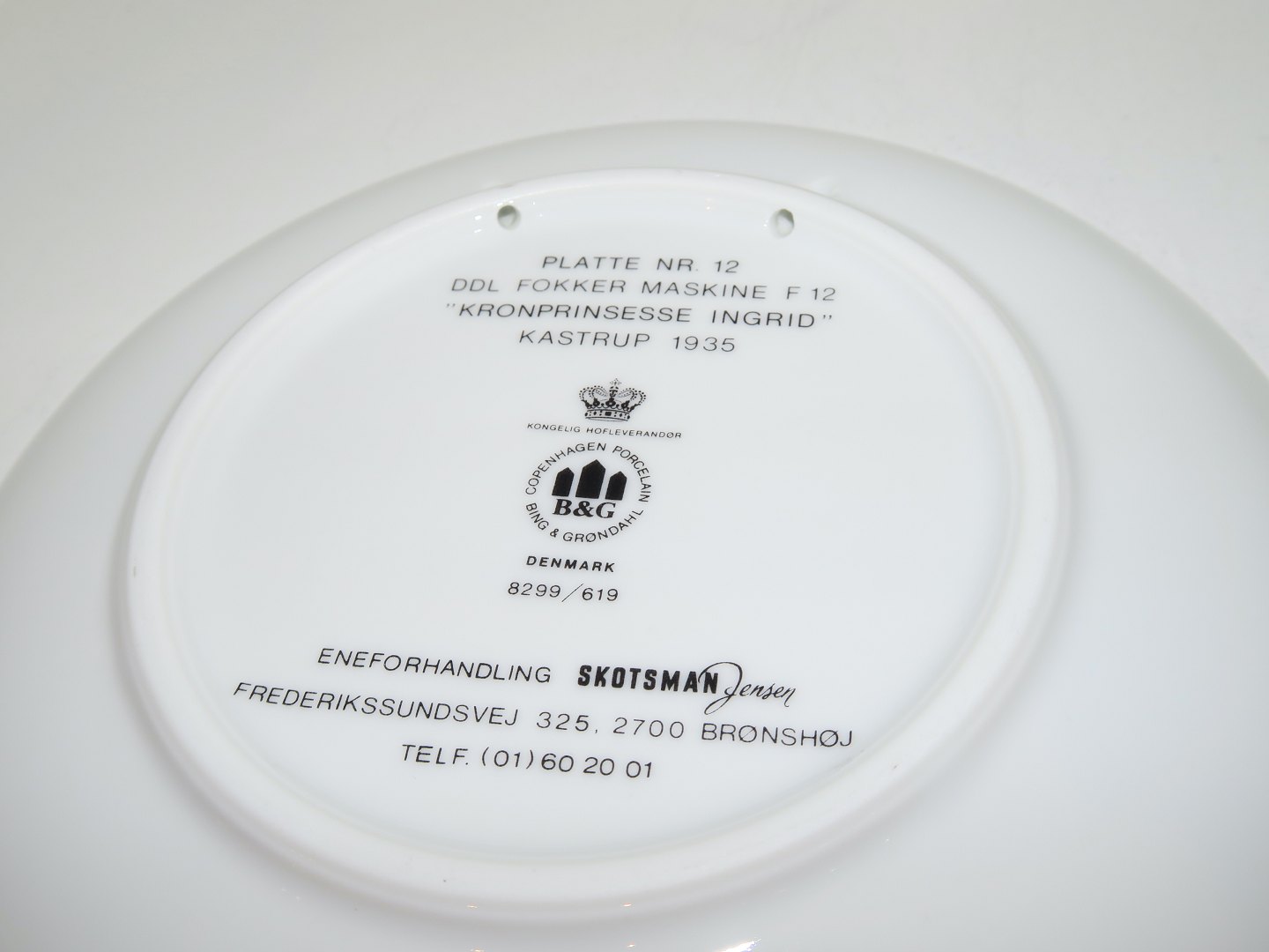 Bing & Grøndahl Postplatte - DDL Fokker Kronprinsesse Ingrid.