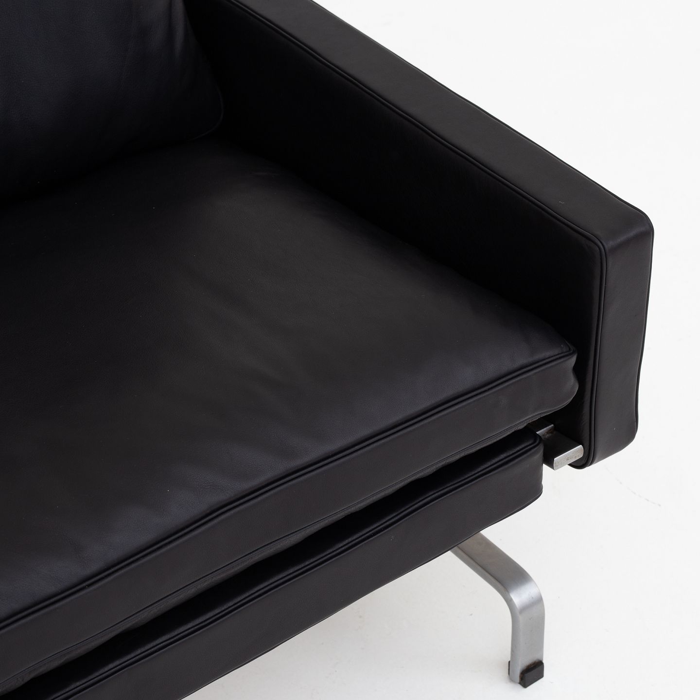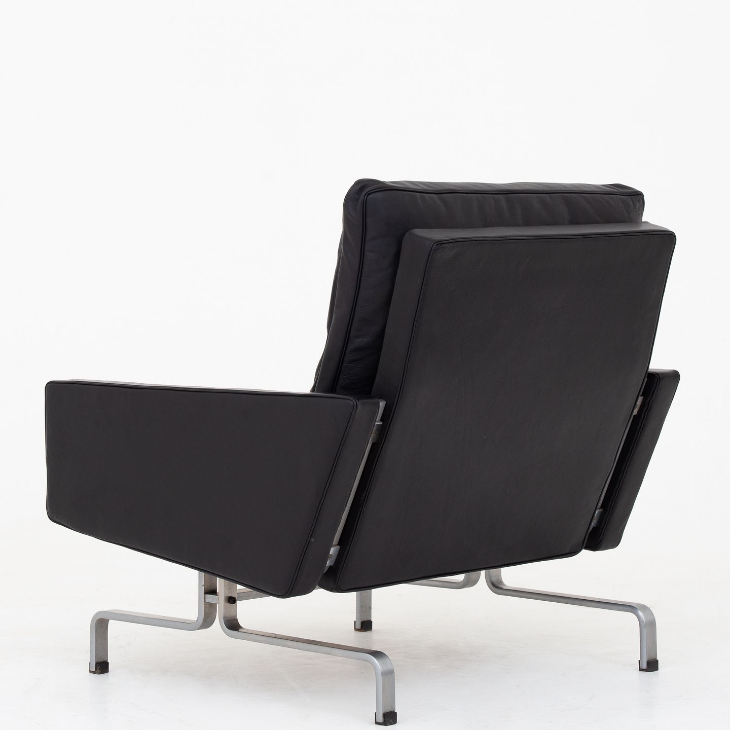 PK 31/1 - Nybetrukket lænestol i Shade-læder (Pitch Black) på stel af stål. KLASSIK tilbyder polstring af lænestolen med stof eller læder efter eget valg.