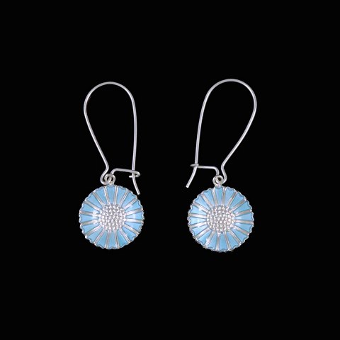 Bernhard Hertz. Marguerit / Daisy Ørekroge i sterling sølv med blå emalje. 18mm