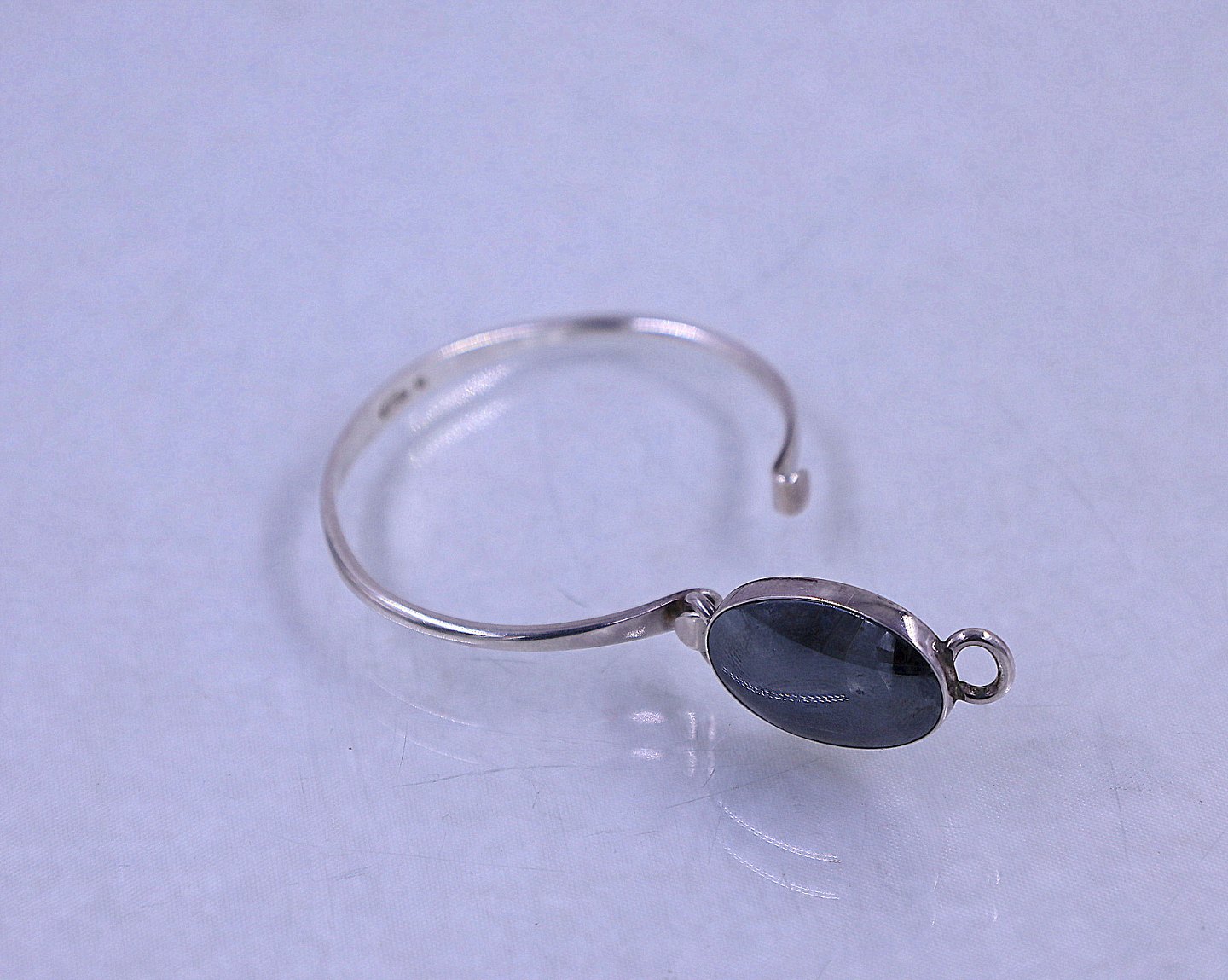Niels Erik From. Vintage armring med sort onyx frontplade. Armringen er sølv 925s, og lukkes med kroglås