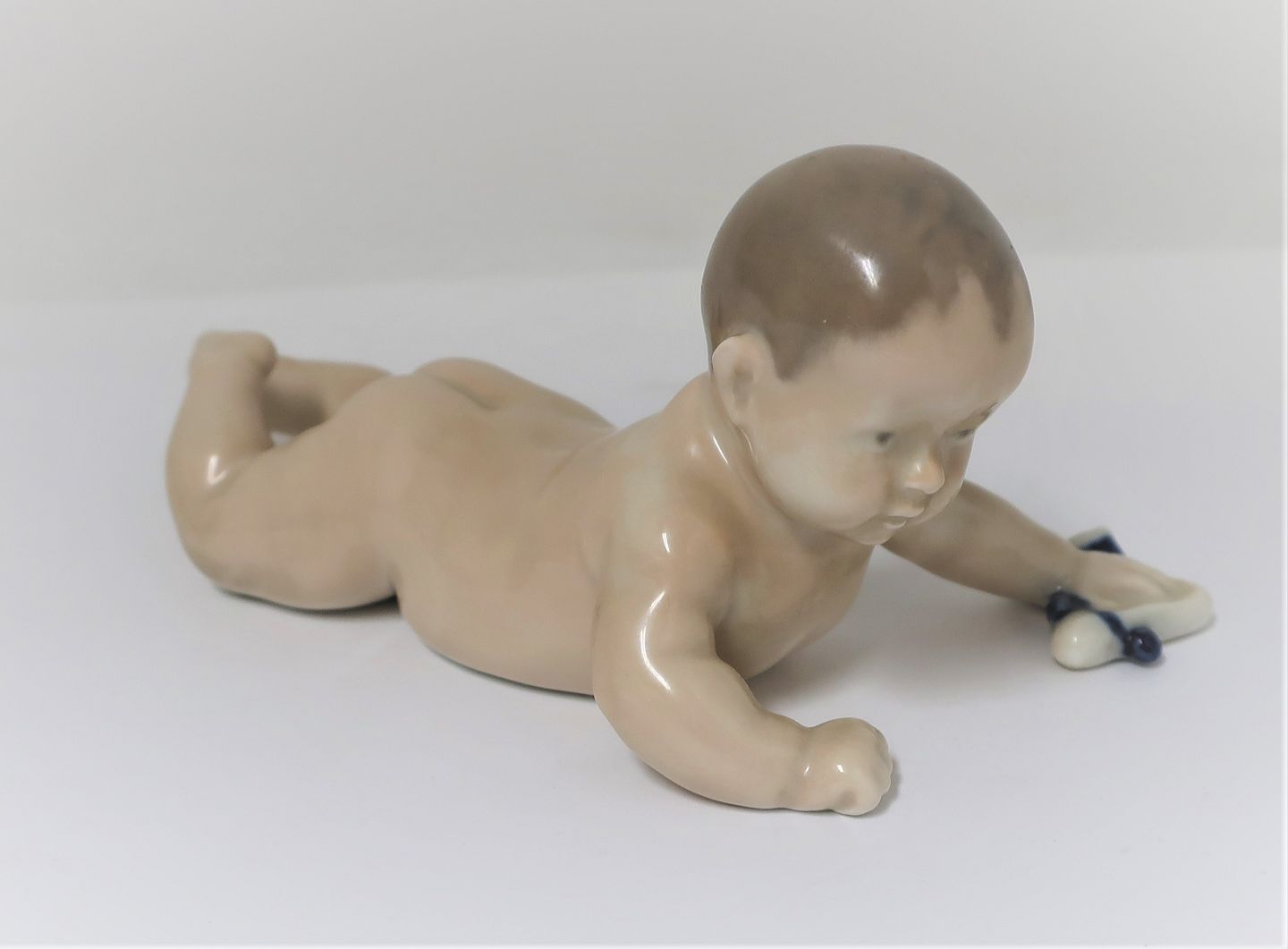Royal Copenhagen. Porcelænsfigur. Liggende baby. Model 1739. Længde 15 cm. ( 1 sortering )