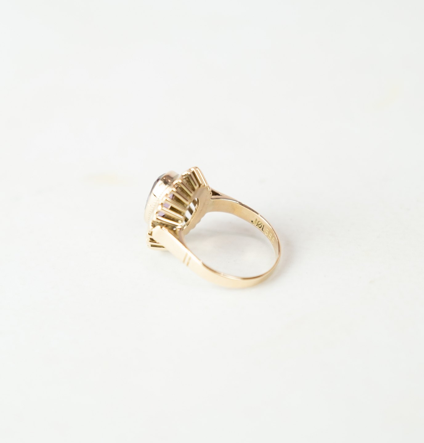 Ring dekoreret med ametyst og af 14 karat guld, stemplet JØL.