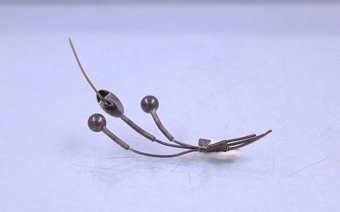 Broche af 3- strå med fjeder. Brochen er af 8530s sølv. Brochen lukkes med krog