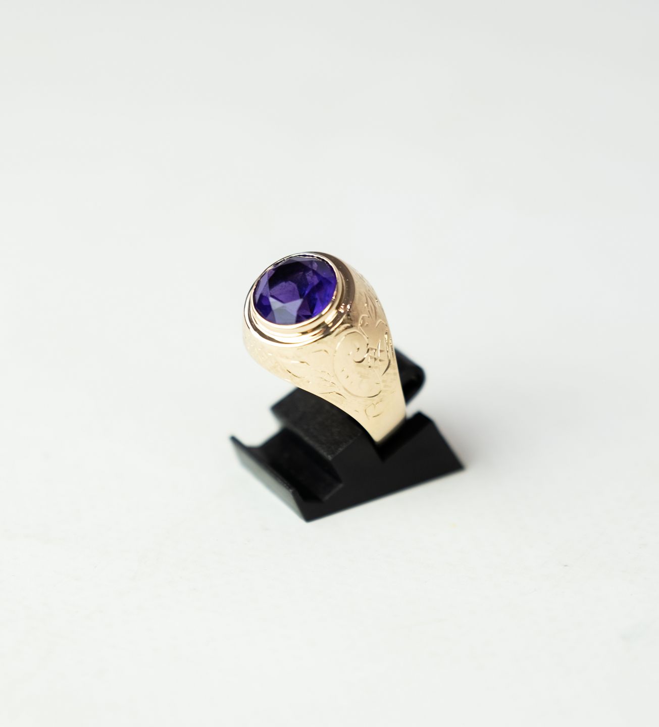 Ring dekoreret med ametyst og af 14 karat guld, stemplet JØ.