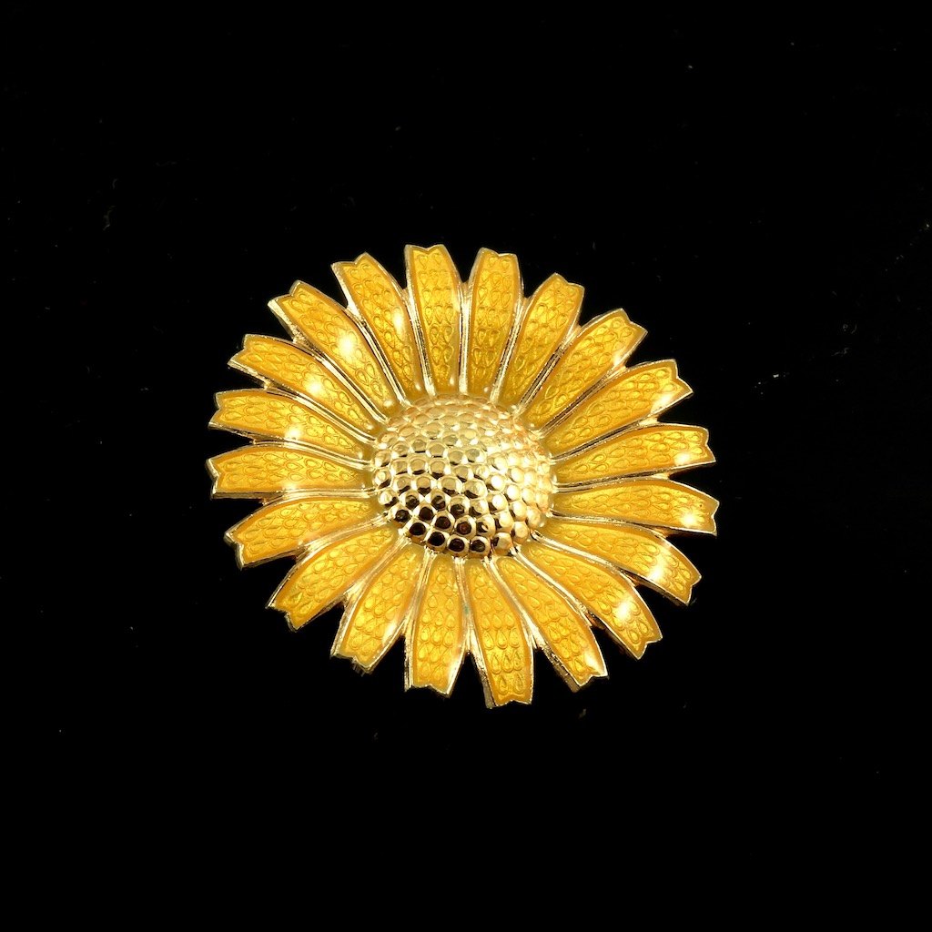 A. Michelsen. Gilded Sterling Silver Daisy Brooch with Yellow Enamel. 43mm