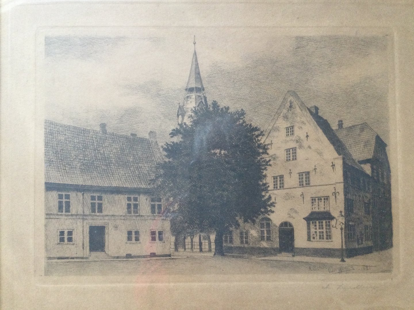 Radering af Anker Schouw-Lundberg 1921 - Gavlhuset på Tønder Torv