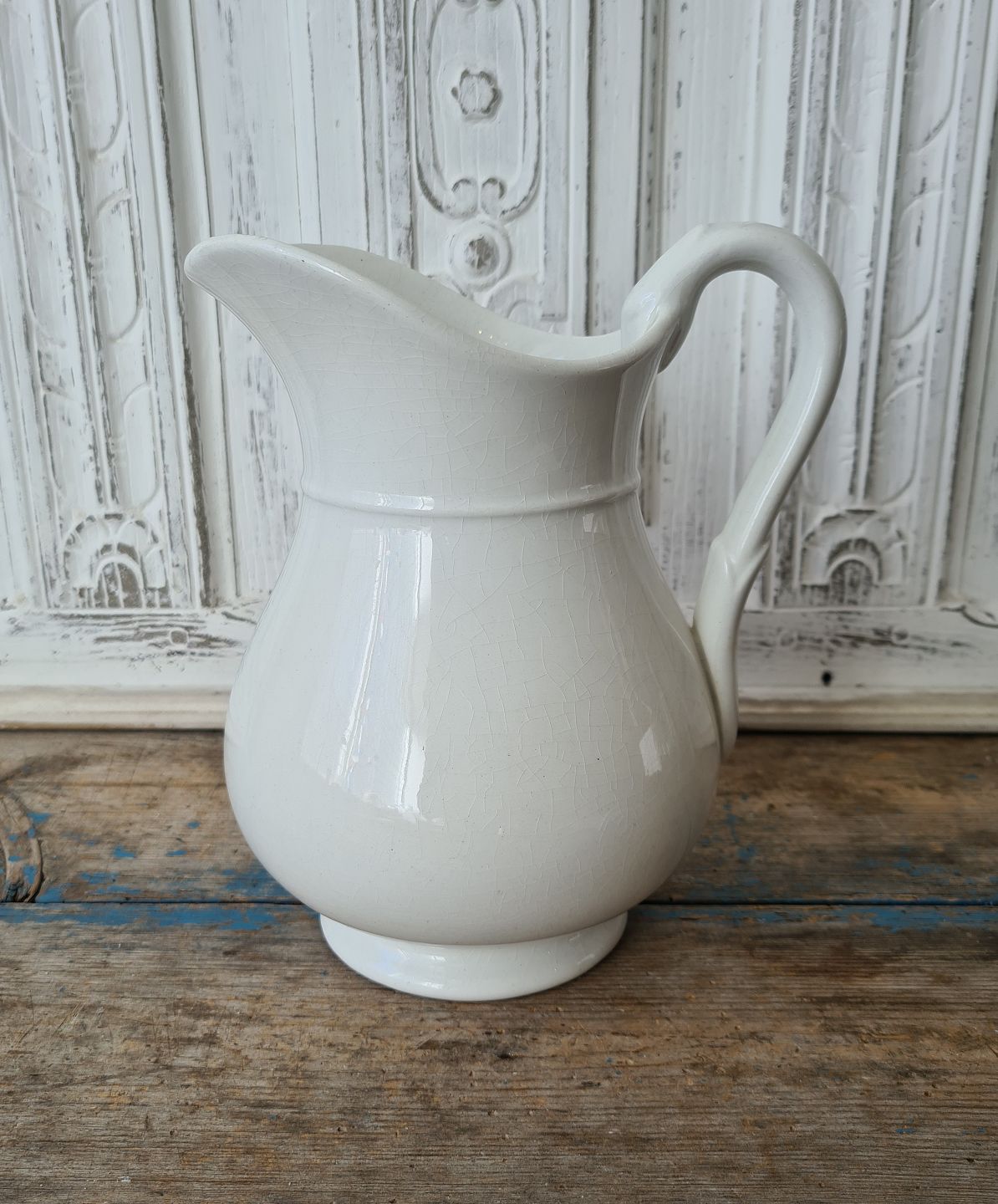 Skøn gammel fajance kande med slangehank fra Aluminia.
