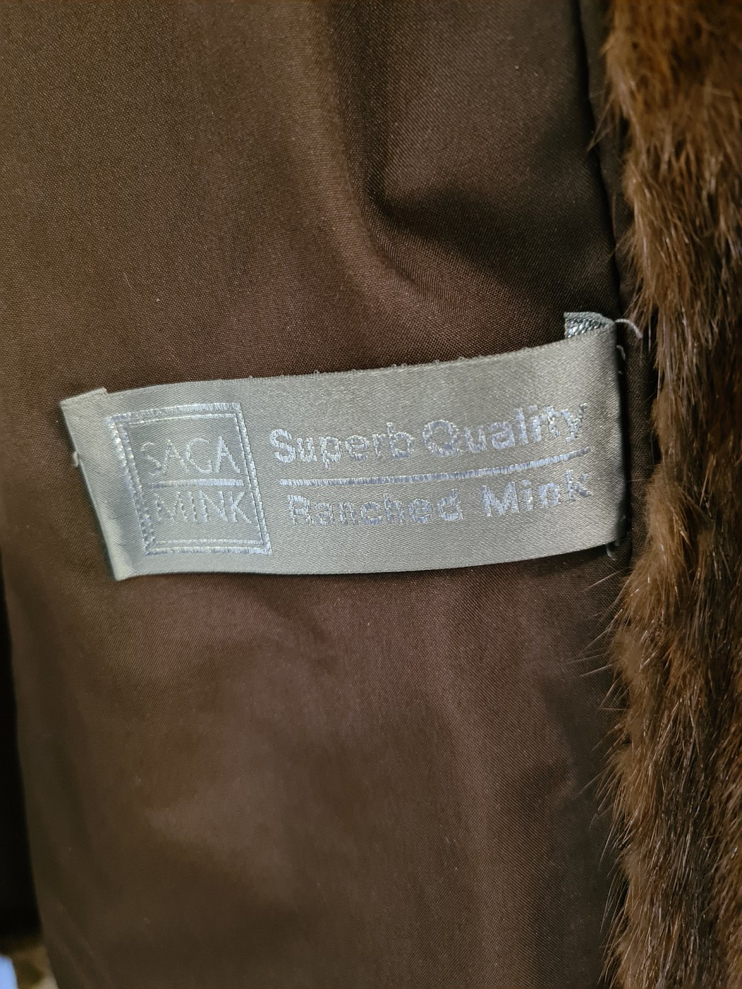 Meget smuk og velholdt mørkebrun Saga minkpels fra 2006
