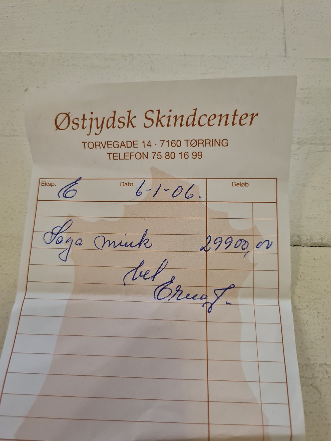 Købt hos Østjydsk skindcenter i 2006 for kr. 29.900.-