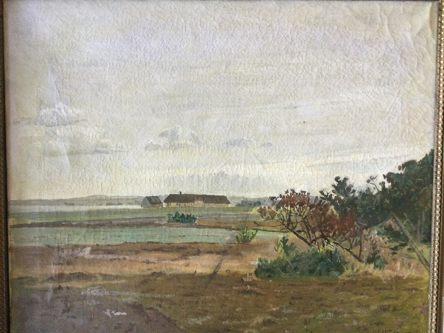 Maleri af Hans Knudsen 1925 - landskab med bondegård.