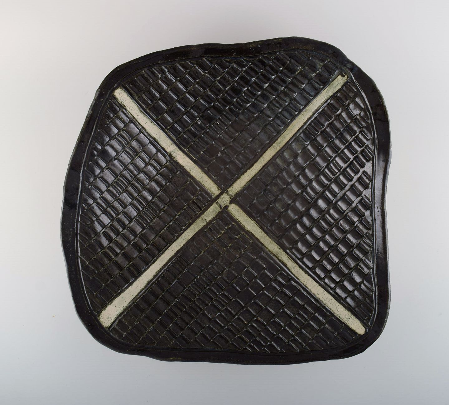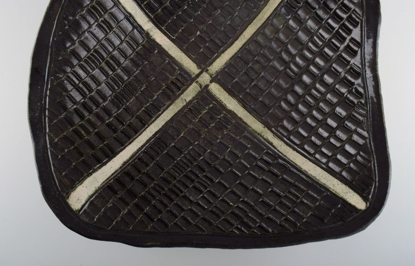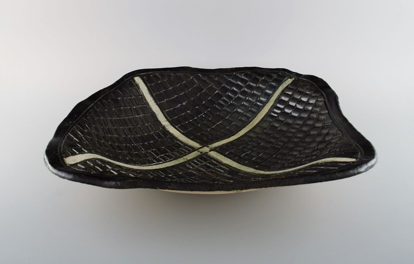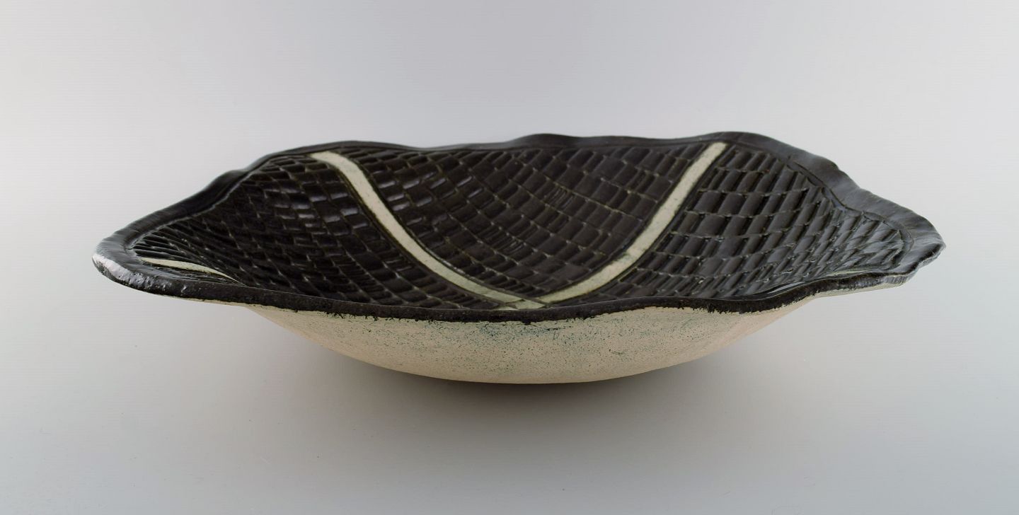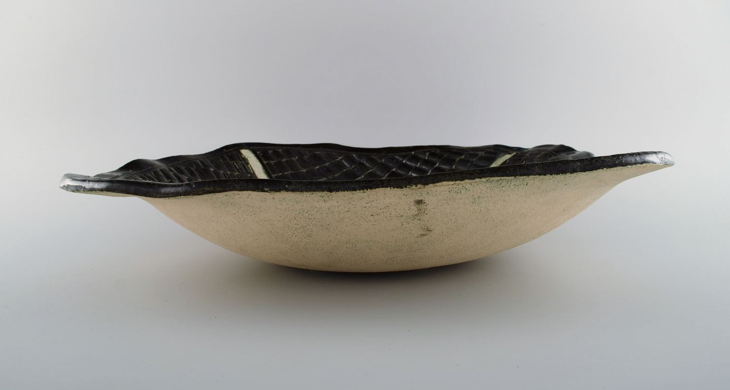 Europæisk studio keramiker. Stort unika fad/skål i glaseret keramik. Sent 1900-tallet.