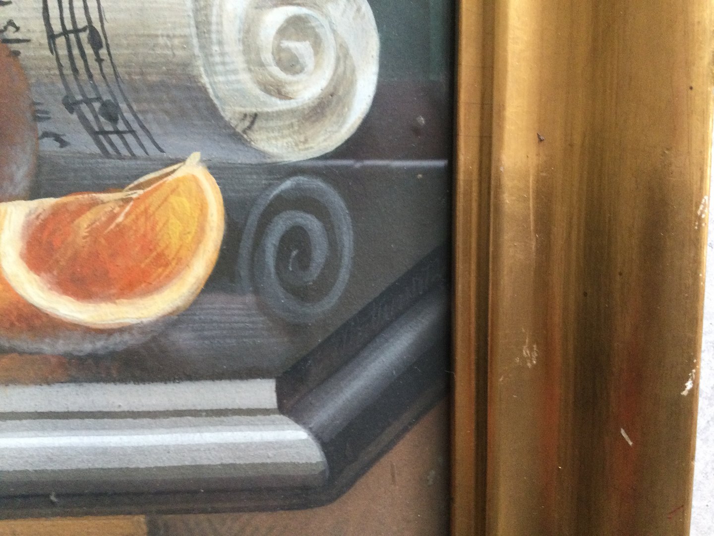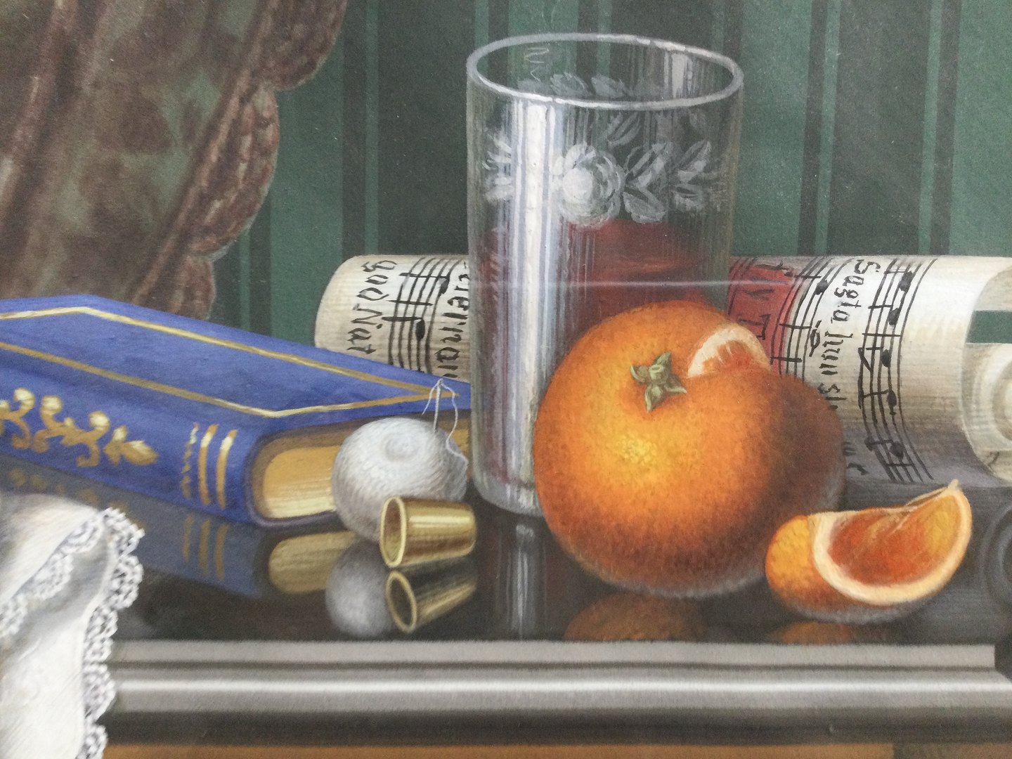 Opstilling på stenkarm med noder, bog, glas og appelsiner 1872.