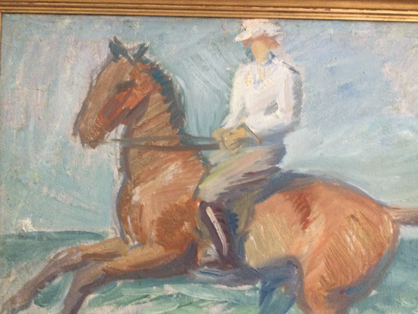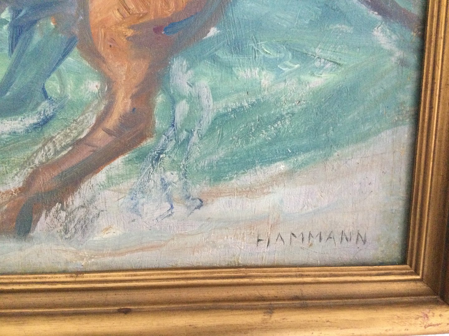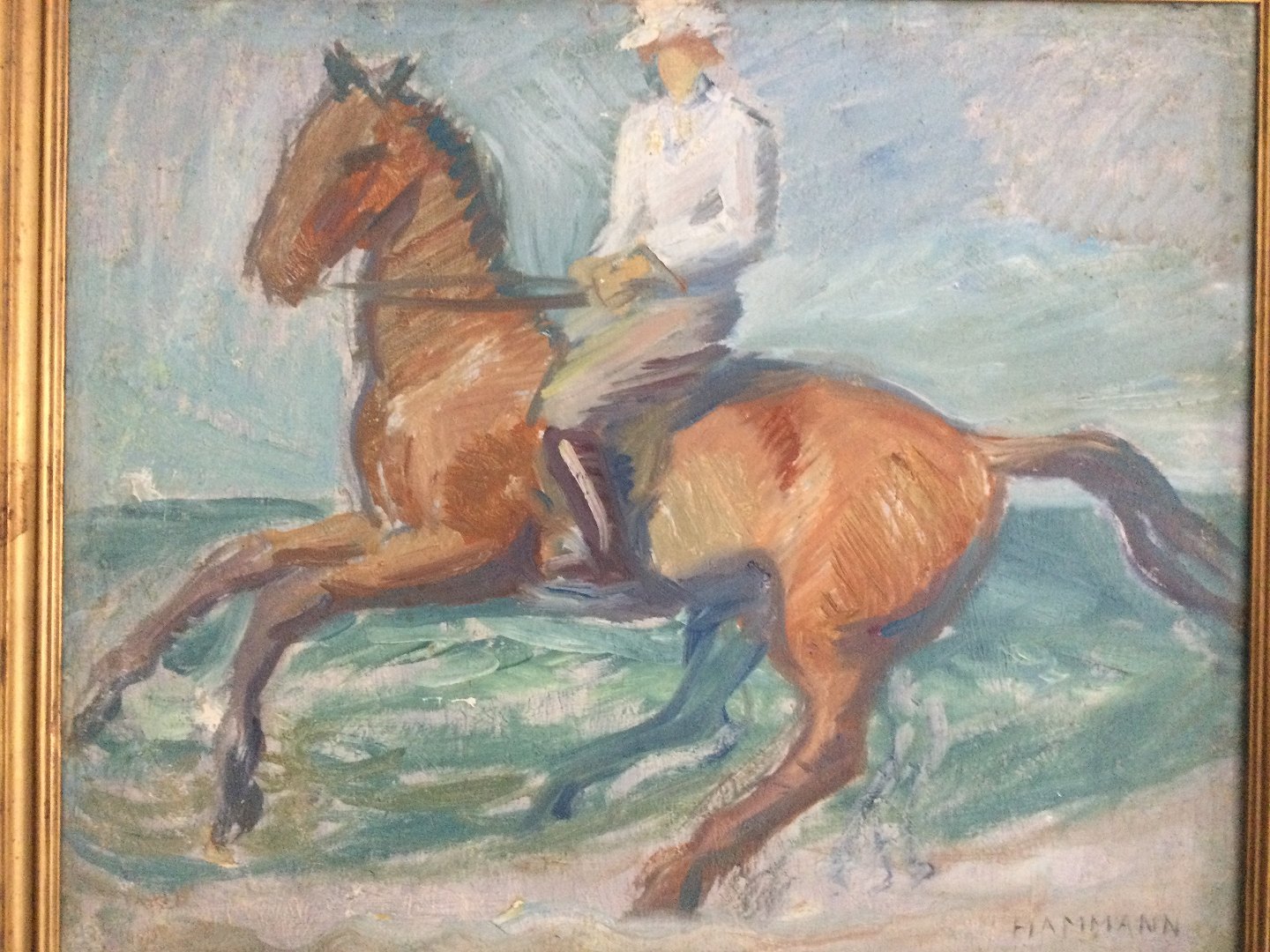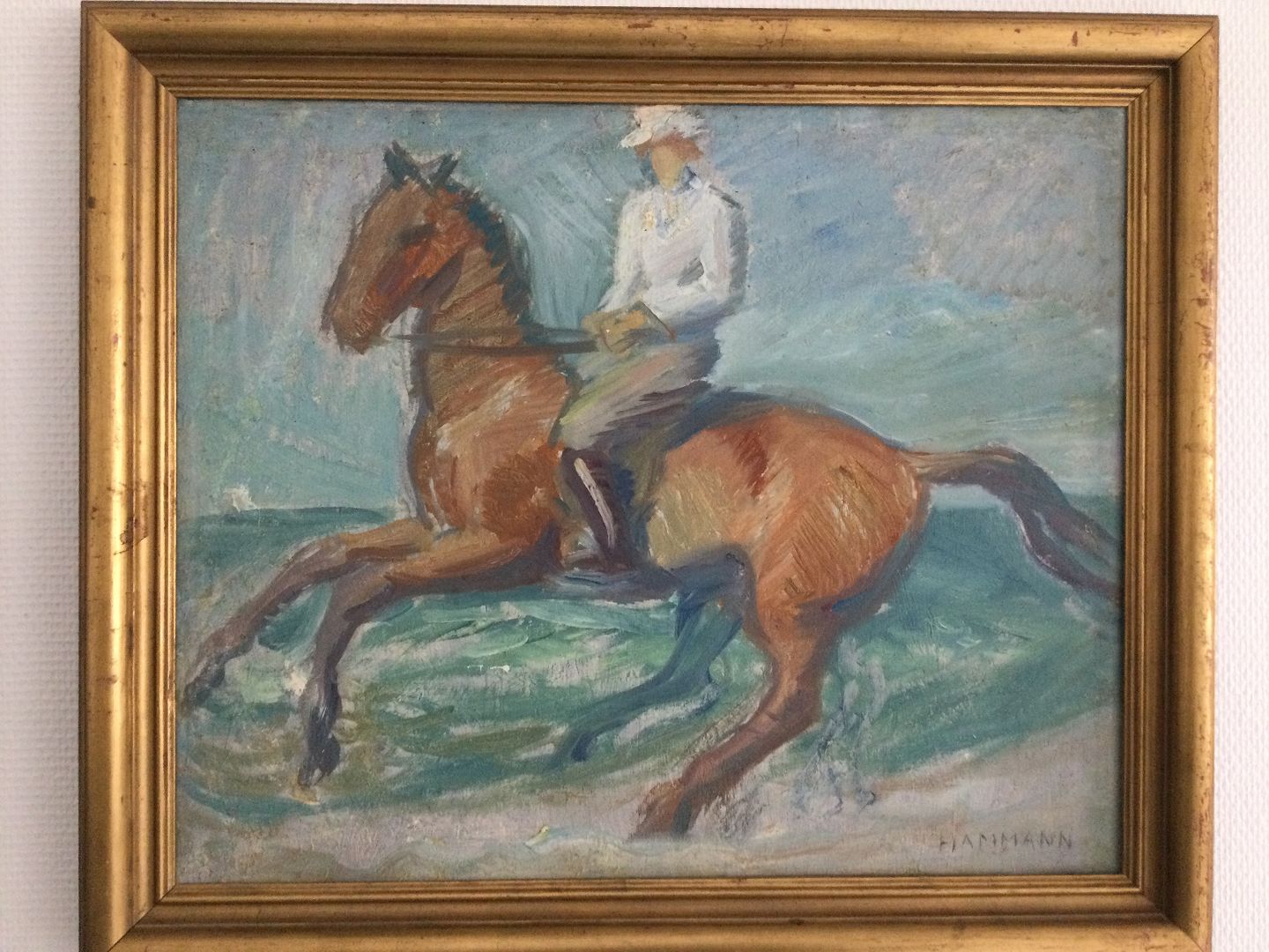 Maleri af Marius Hammann - Rytterske på stranden.