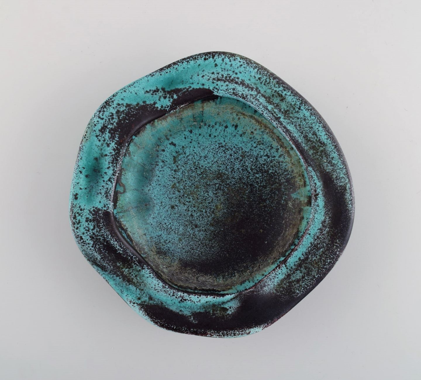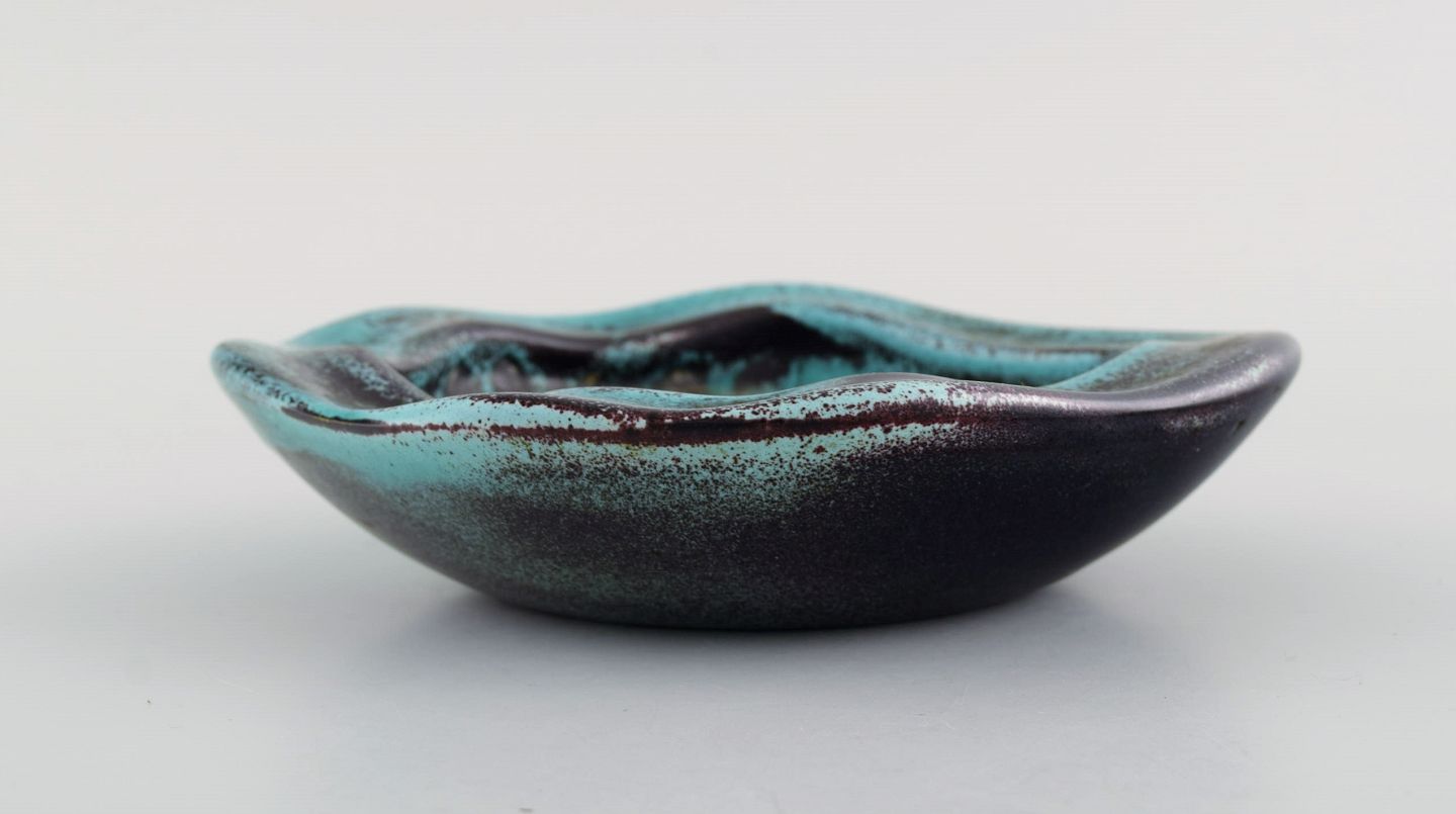 Nils Kähler (1906-1979) for Kähler. Skål i glaseret keramik. Smuk glasur i turkis og mørke nuancer. 1960'erne.