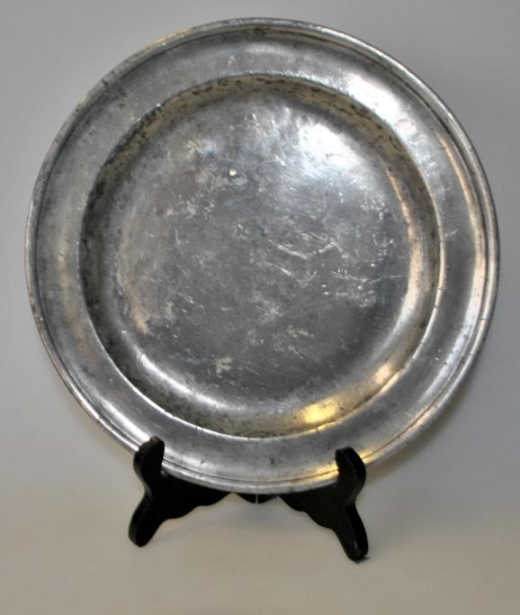 Tin tallerken, 18.årh. London, England. Stemplet Claridge, London. Dia: 22,6 cm.
