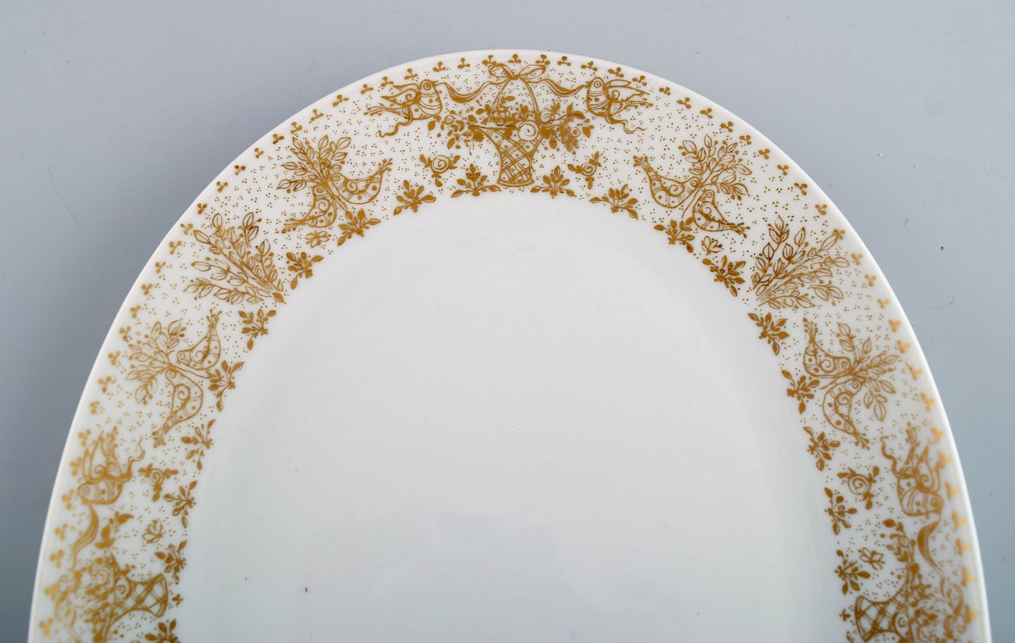Bjørn Wiinblad for Rosenthal. To ovale serveringsfade i porcelæn med gulddekoration. 1980'erne.