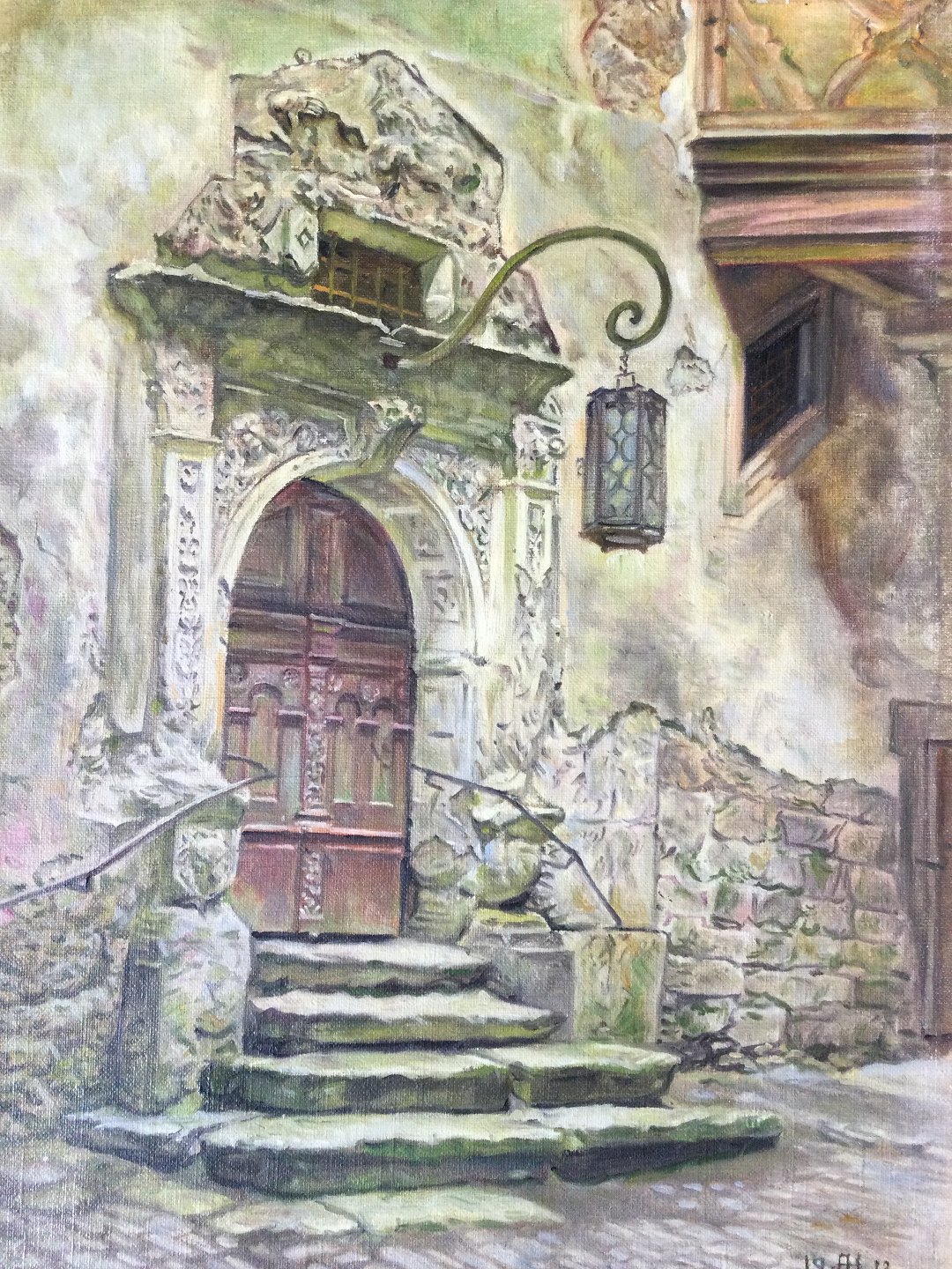 Maleri 1913 - Indgangsportal til det gamle rådhus i Rothenburg.