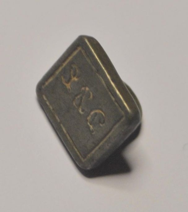 Segl i alumininium, 19. årh. Danmark. Med obgstaverne: DBL. l.: 1,5 cm. Antagelig fra en urkæde.