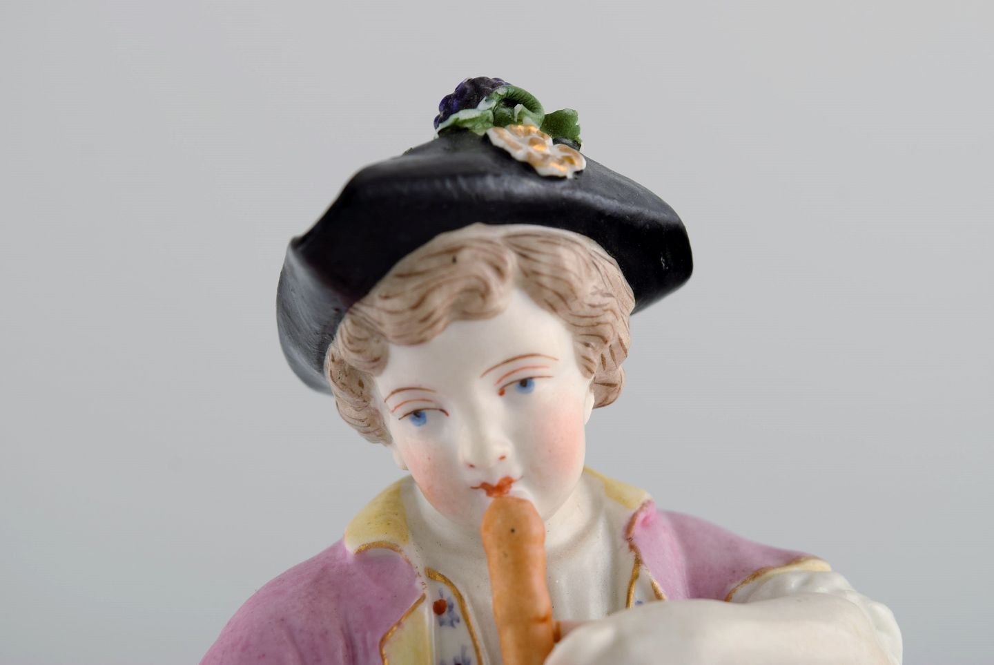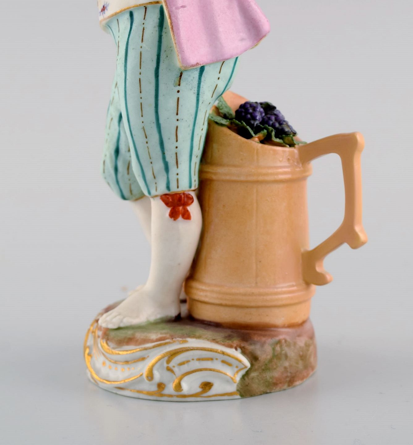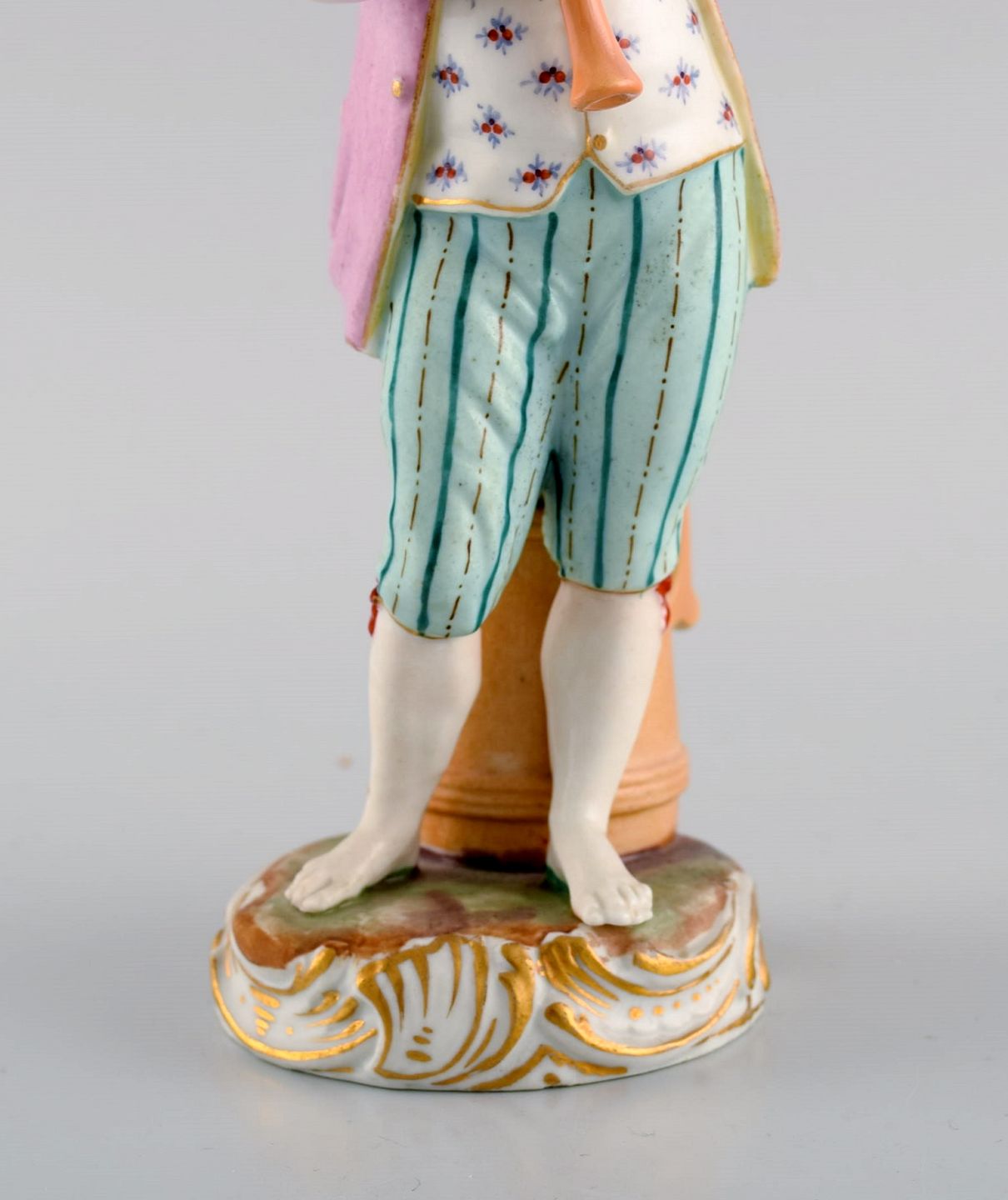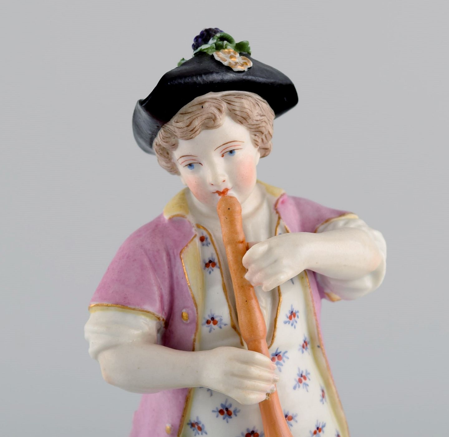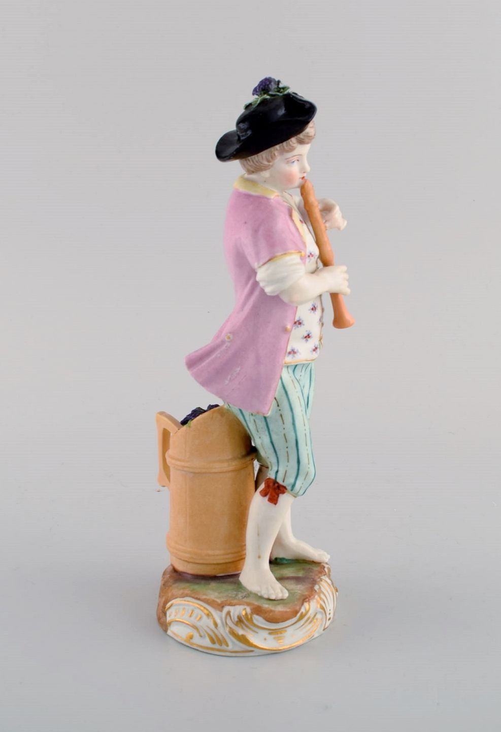Antik Meissen figur i håndmalet porcelæn. Dreng med fløjte. Marcolini perioden 1774-1814.
