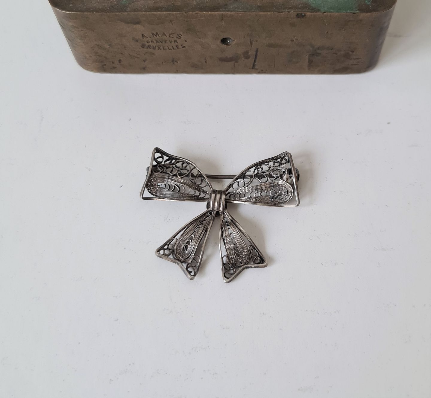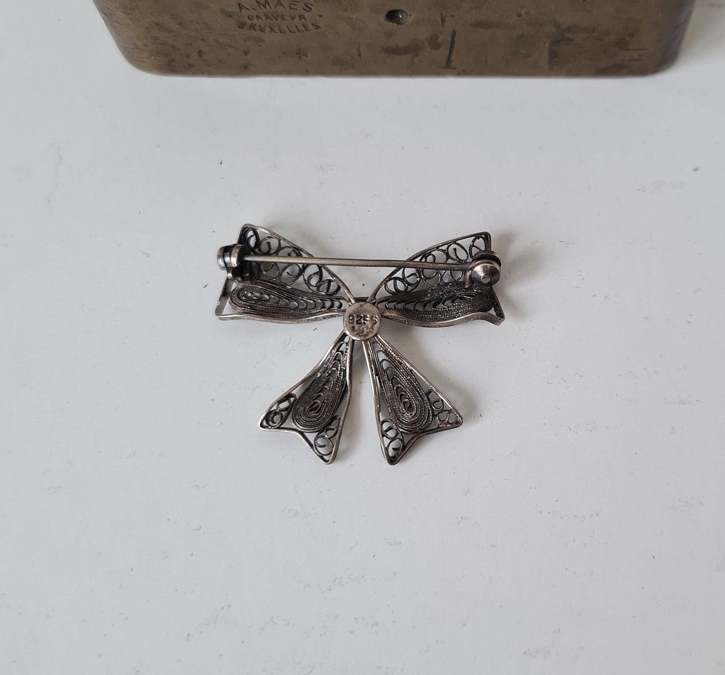 Filigree loop brooch in silver