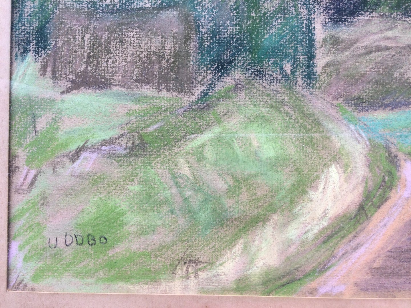 Farvekridt af Folke Uddbo - Landskab fra Fagersta i Sverige.