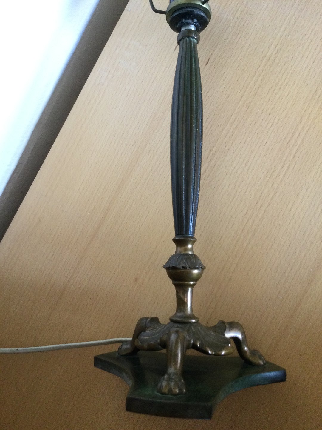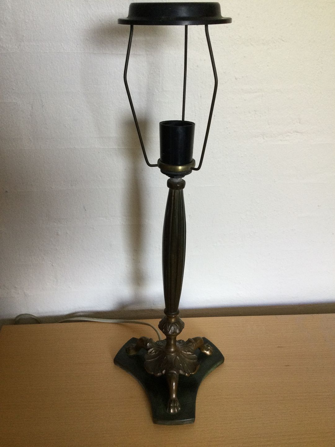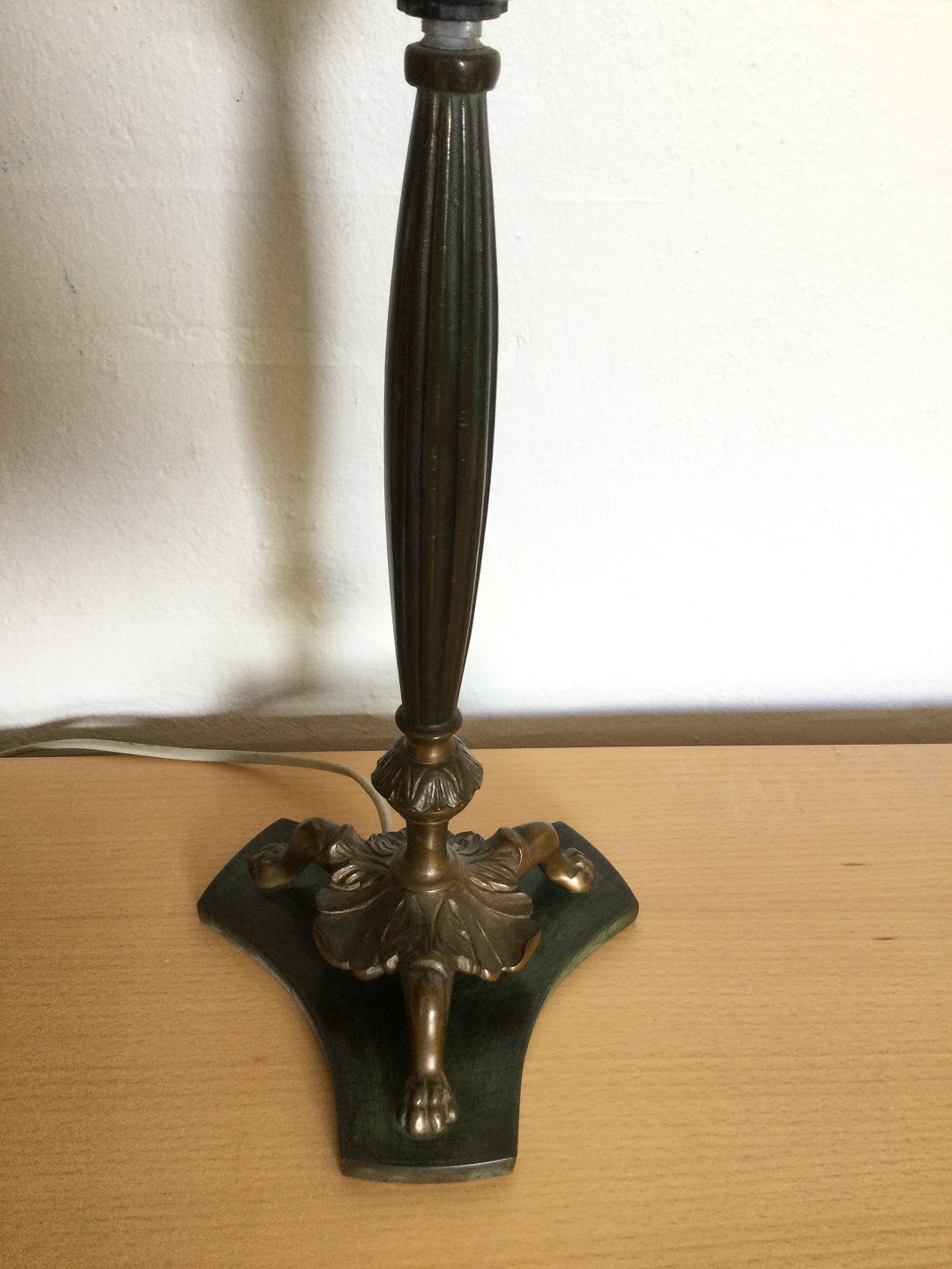 Bronze bordlampe på trepasfod.