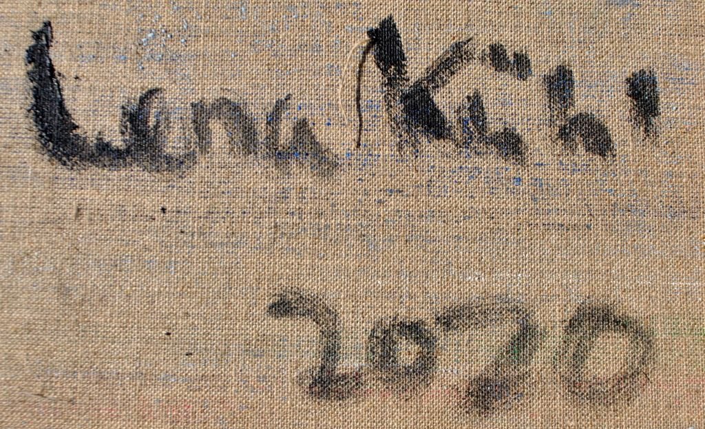 Kühl, Lena (1950 -) Danmark: Komposition. Acryl på lærred. Verso signeret 2020. 27 x 38 cm. Uindrammet.