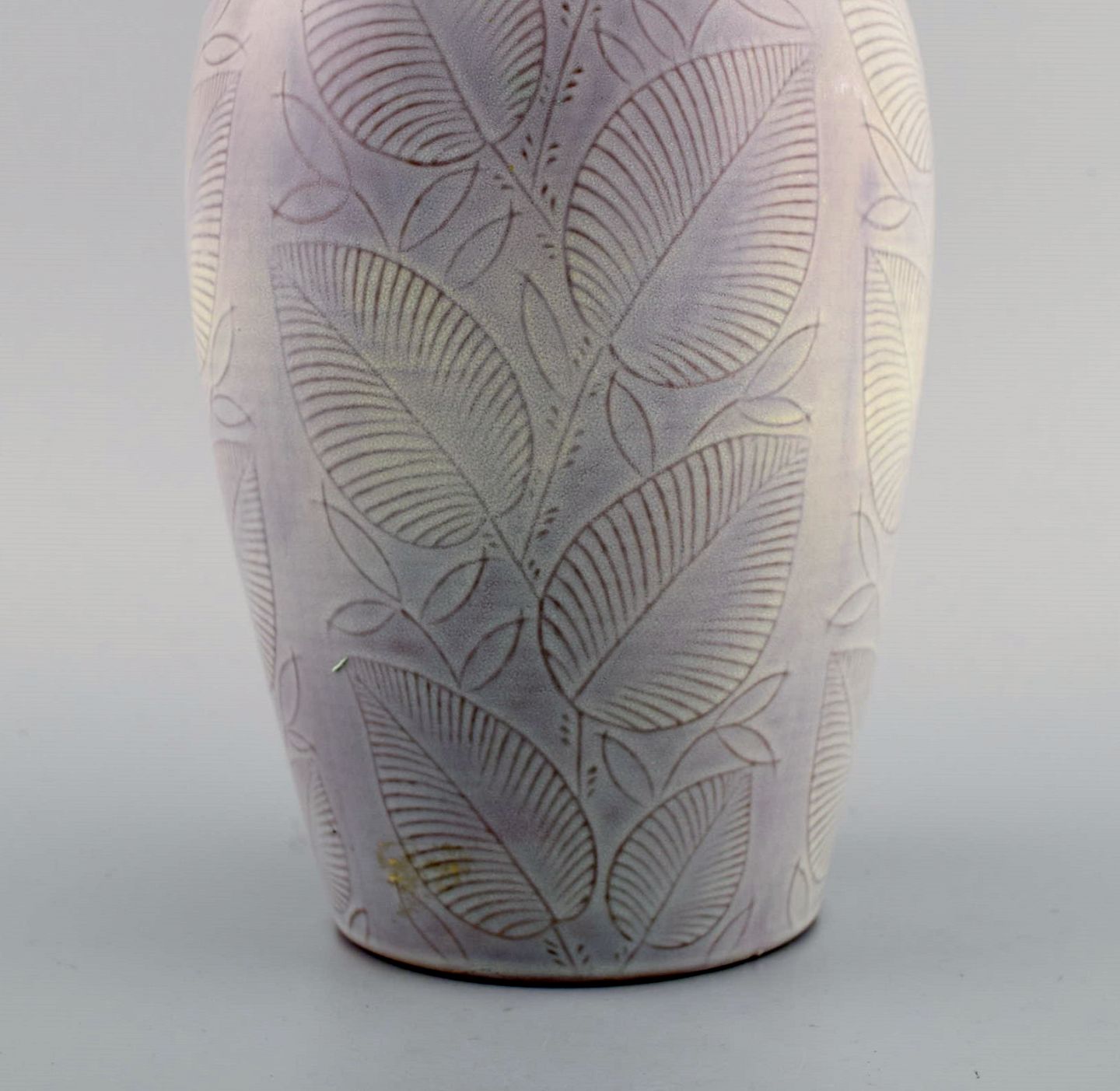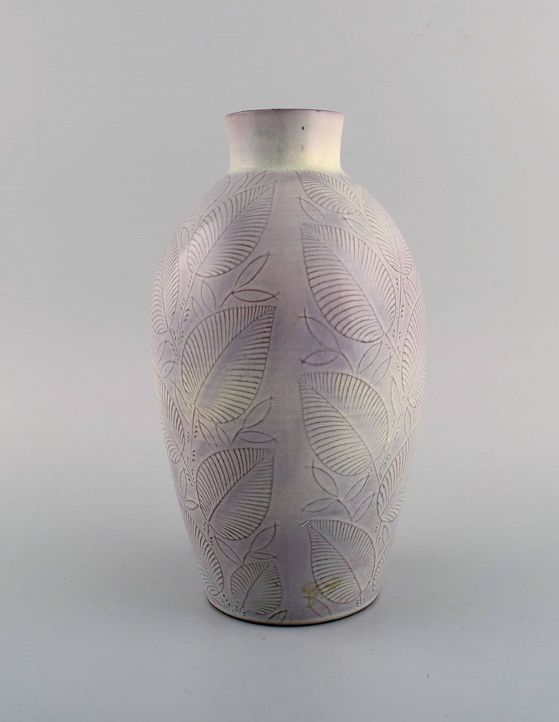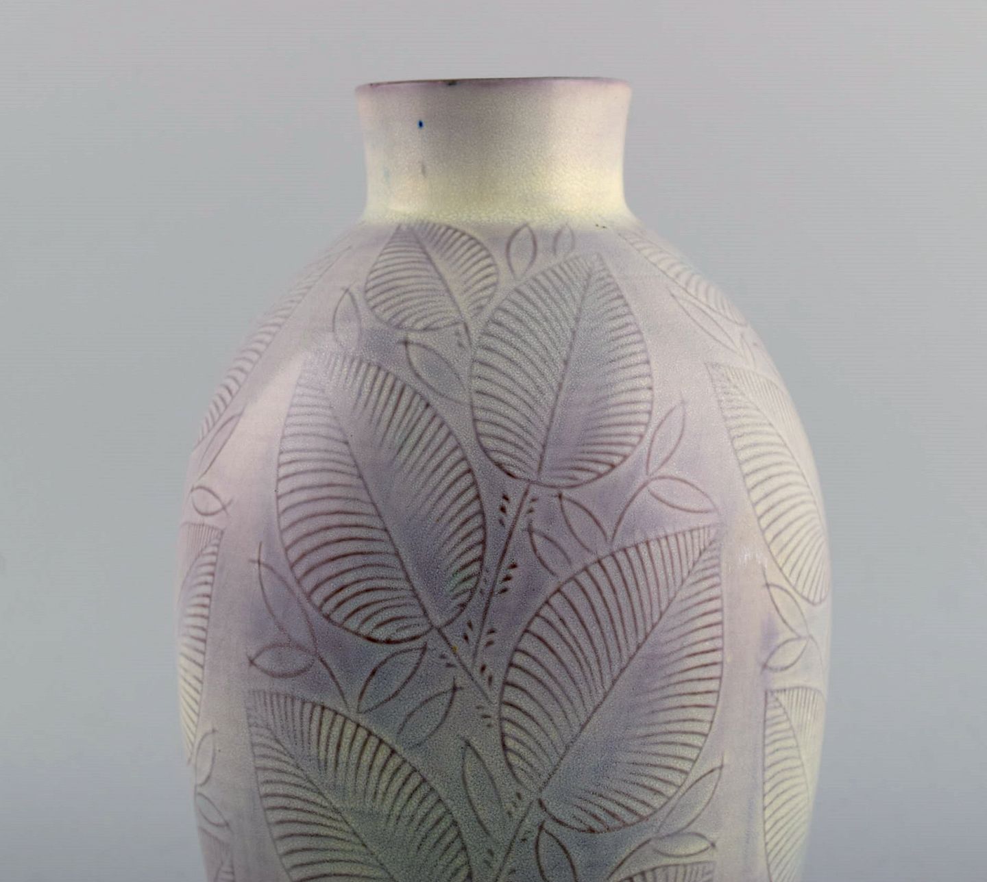 Nils Thorsson for Royal Copenhagen. Vase i glaseret keramik med bladdekoration. Dateret 1944.
