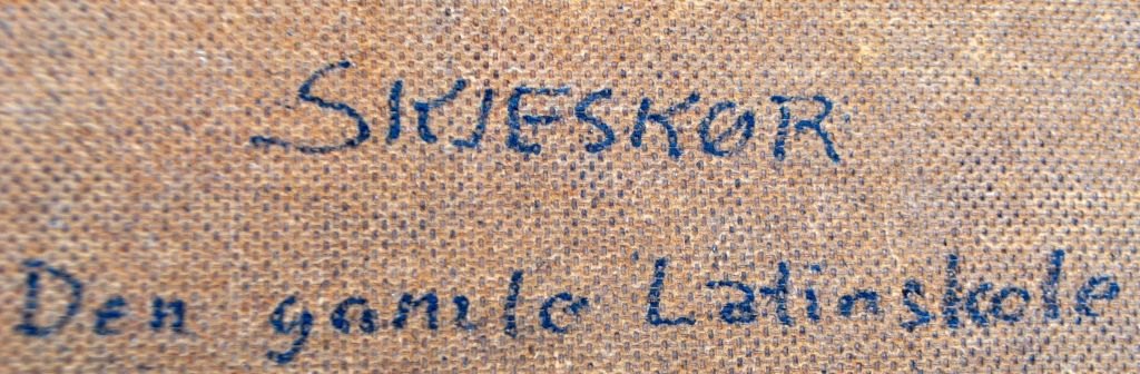 På bagsiden label fra kunstnerens dødsboauktion, 1. dec. 1982 Nellemann & Thomsen, Aarhus. Nr. 113.