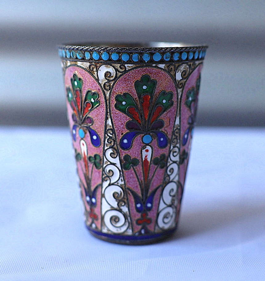 Russisk bæger af sølv, dekoreret med cloisonné emalje