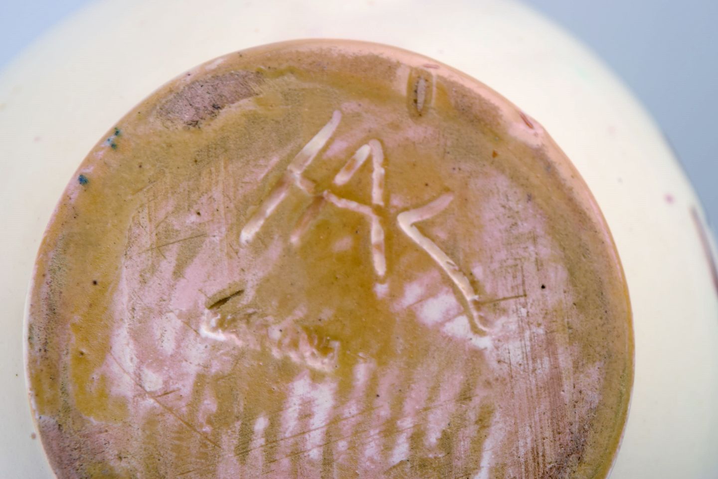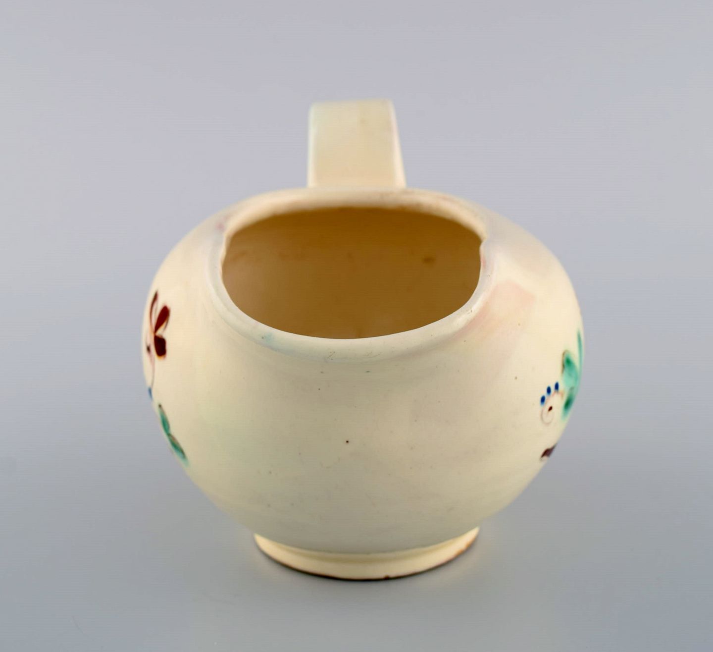 Kähler, HAK. Kande i glaseret keramik. Blomster på cremefarvet baggrund. Moderne design, 1930/40'erne.