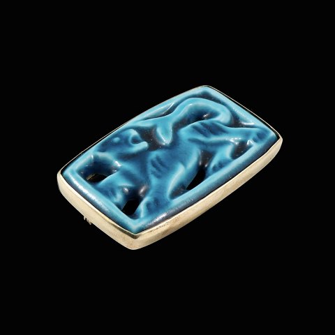 Jais Nielsen 1885-1961. Ceramic Brooch with glace and gilded silver mounting.