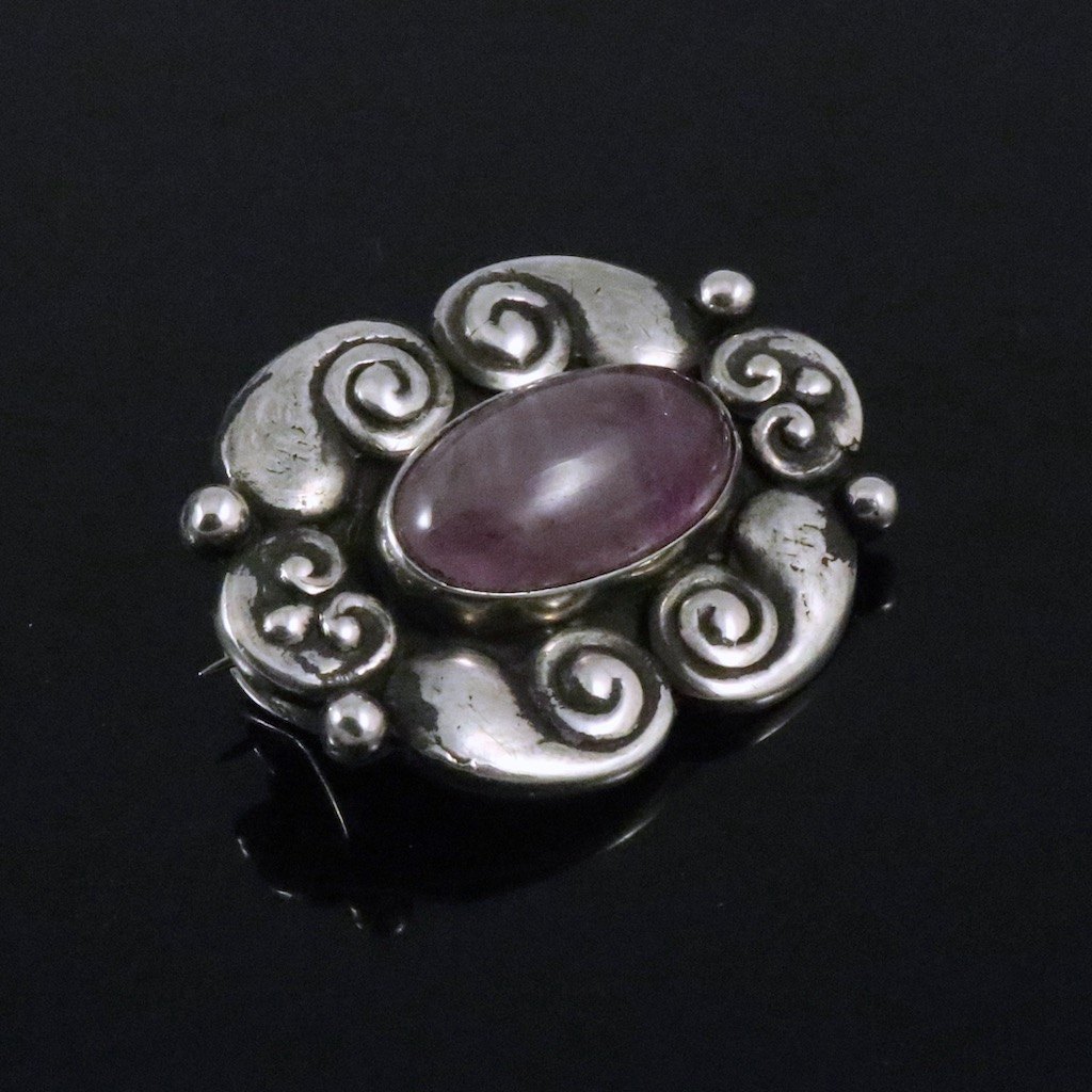 Erik Magnussen 1884-1960. Art Nouveau Silver Brooch with Amethyst.
