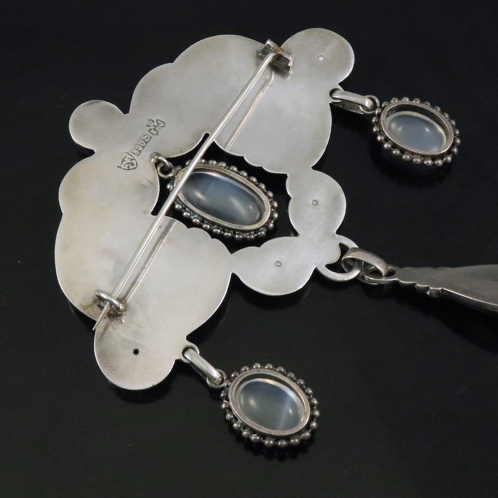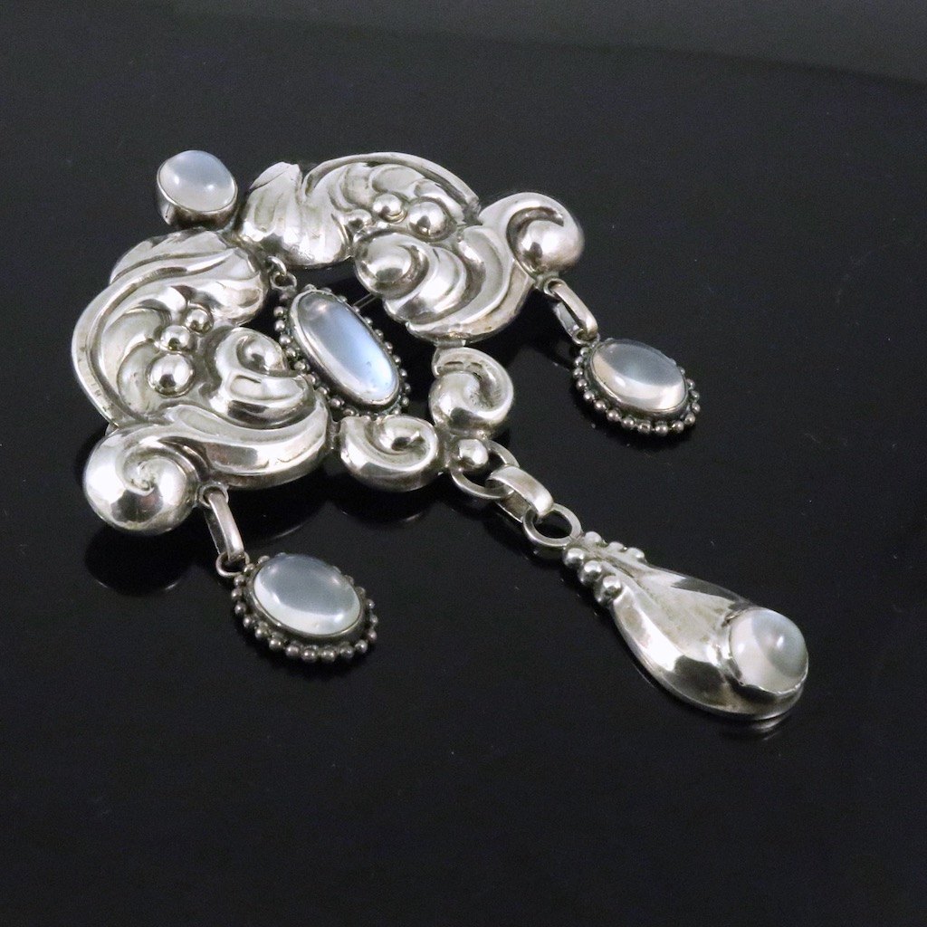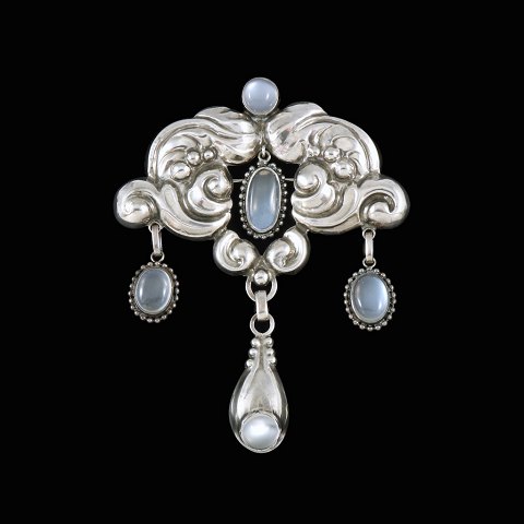 Knud Georg Jensen. Art Nouveau Silver Brooch with Moonstones.