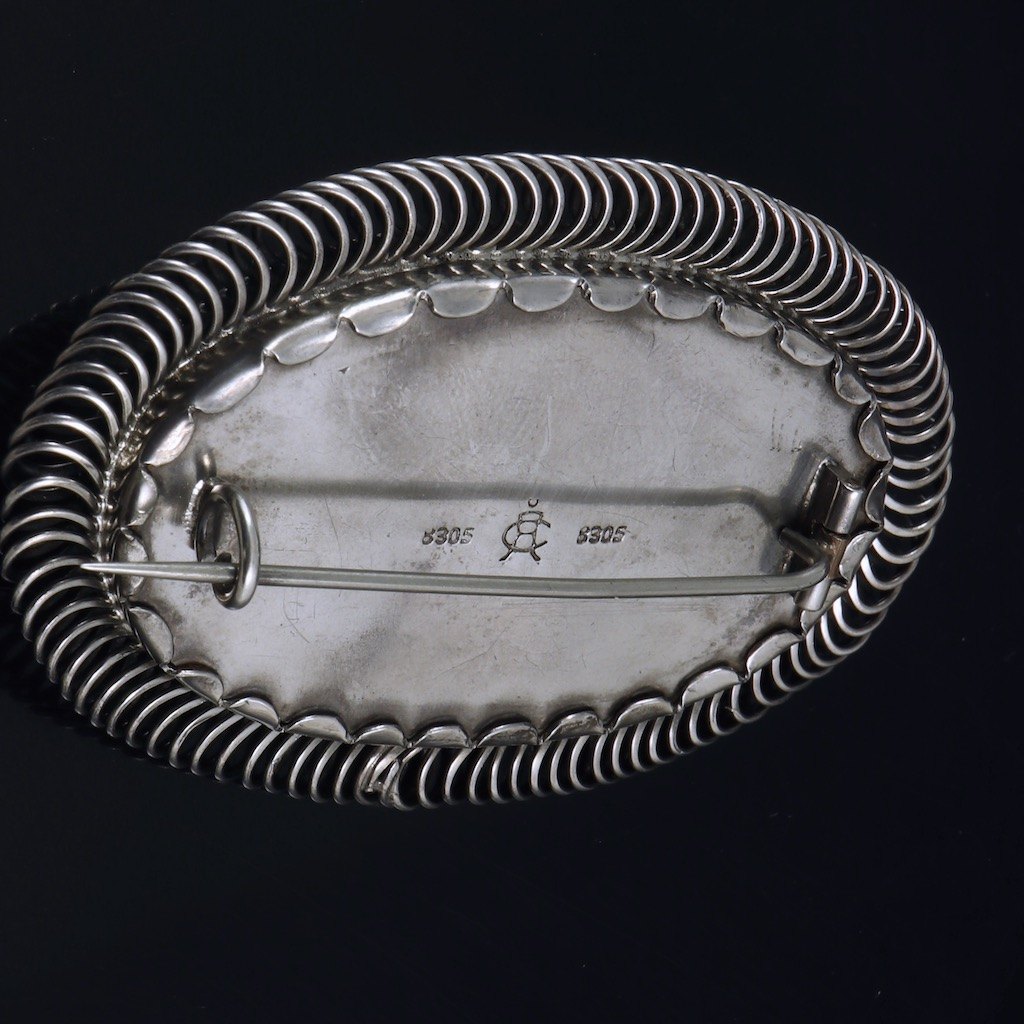 C.F. Andreasen - KBH. Skønvirke Broche i sølv med rav og opal.