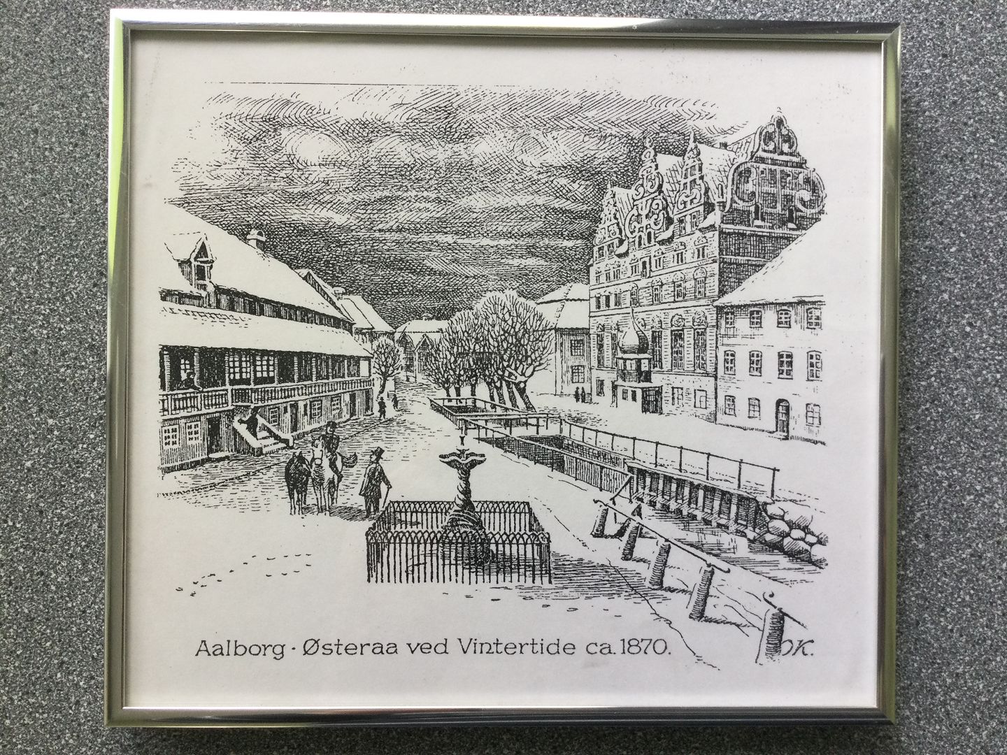 Nyere tryk efter tegning 1870 fra Østeraa i Aalborg.