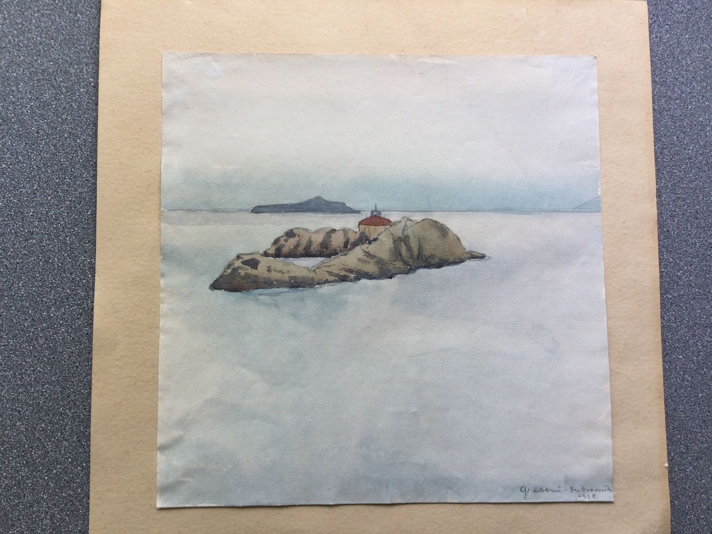 Akvarel på papir monteret på pap.